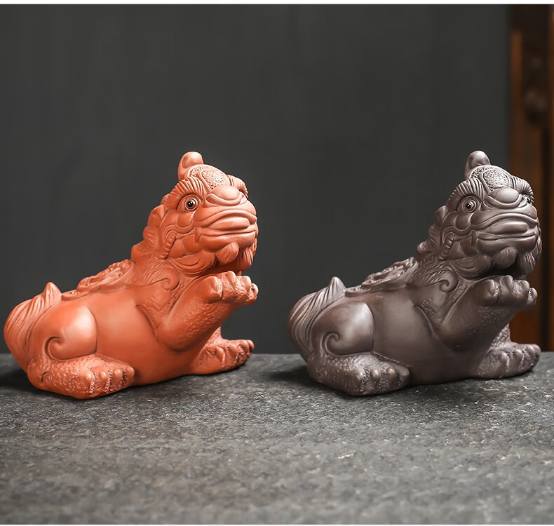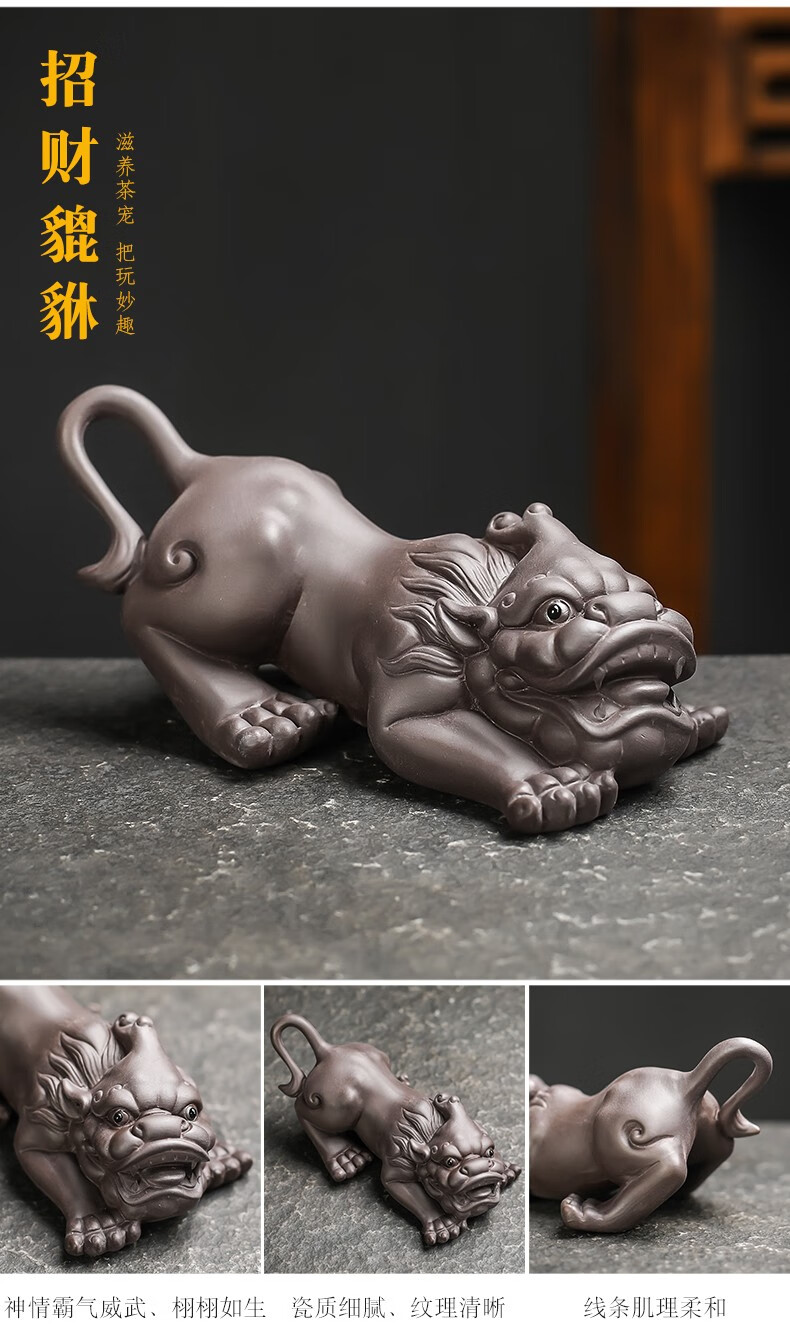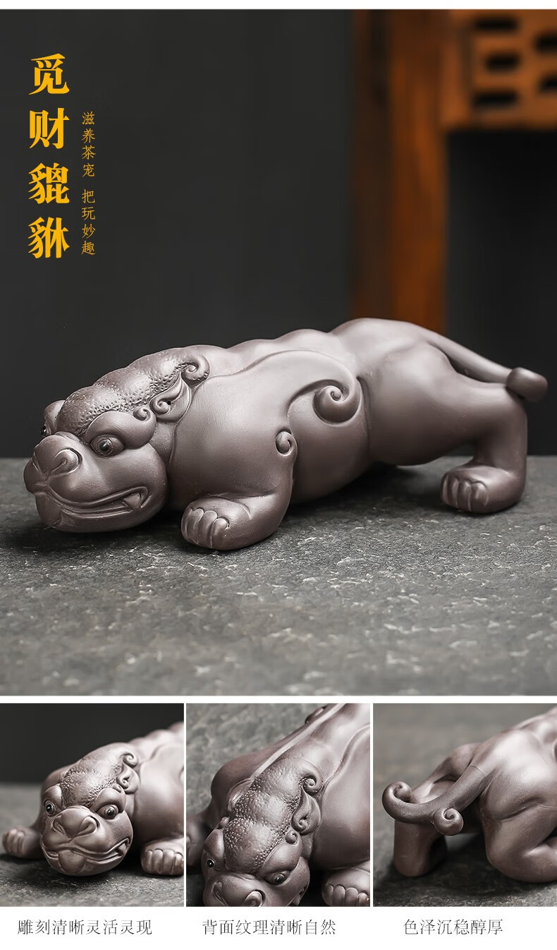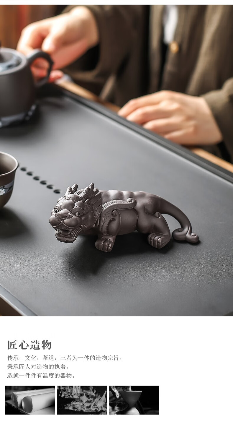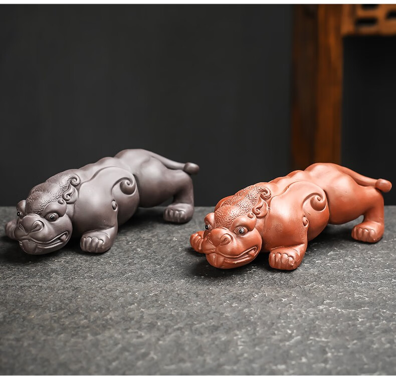 Yuxuan Purple Clay Tea Pet Lucky Pi Xiu Ornament High Quality Handmade Can Raise Tea, Play Tea Ceremony Tea Tray Office Home Ornament Black Mud Lucky Pi Xiu--Medium Size