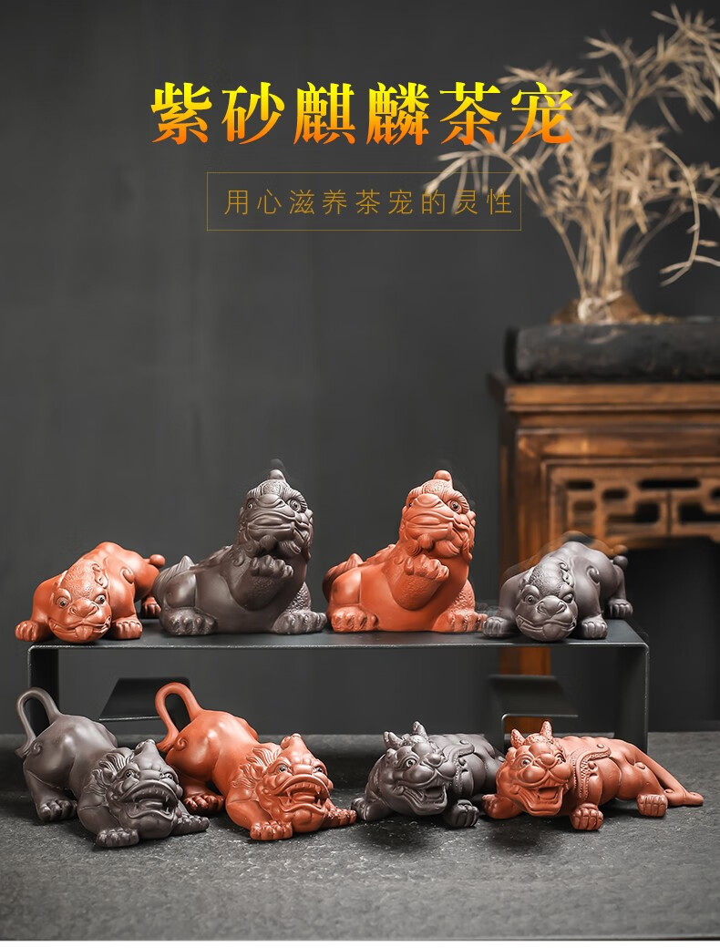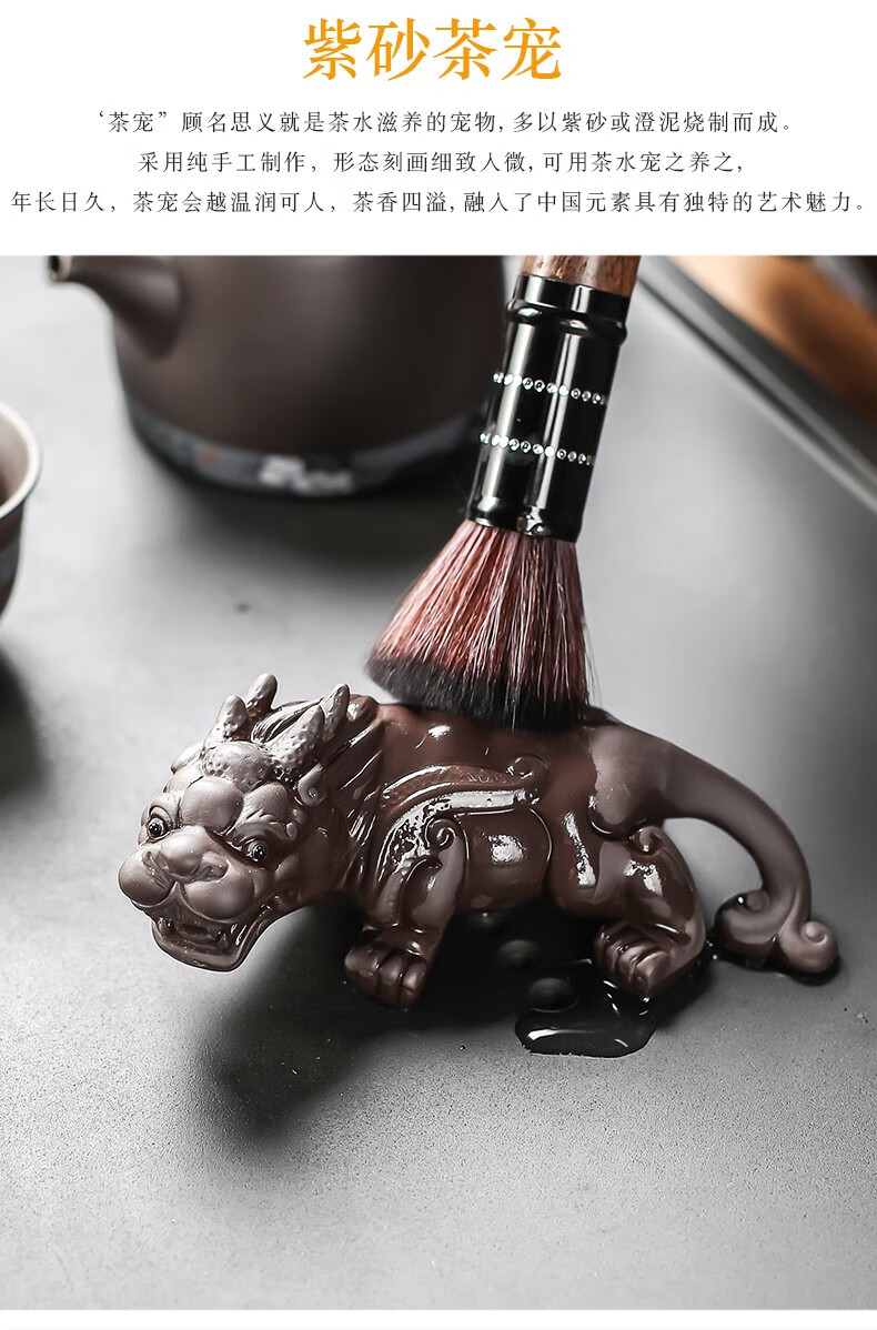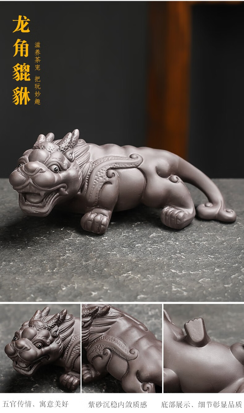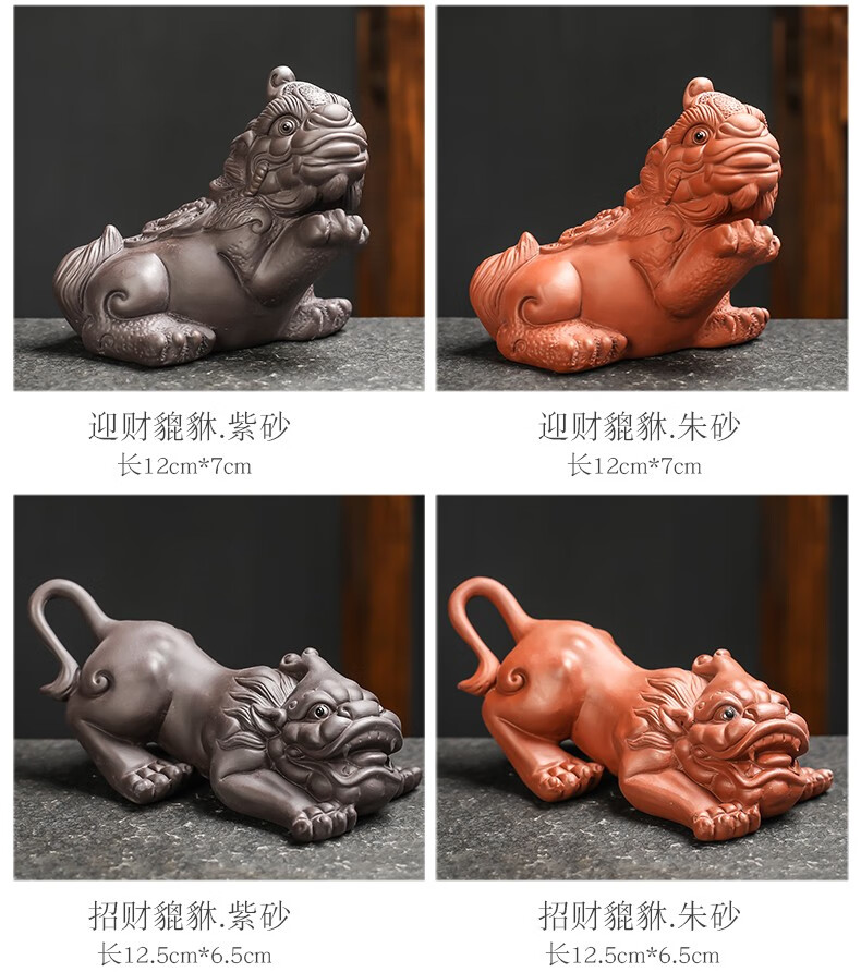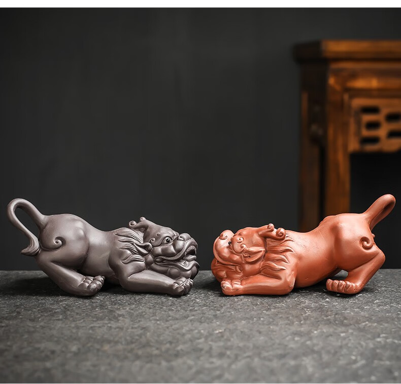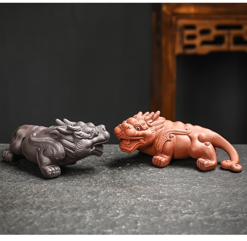 Yuxuan Purple Clay Tea Pet Lucky Pi Xiu Ornament High Quality Handmade Can Raise Tea, Play Tea Ceremony Tea Tray Office Home Ornament Black Mud Lucky Pi Xiu--Medium Size