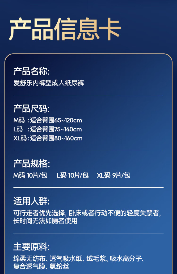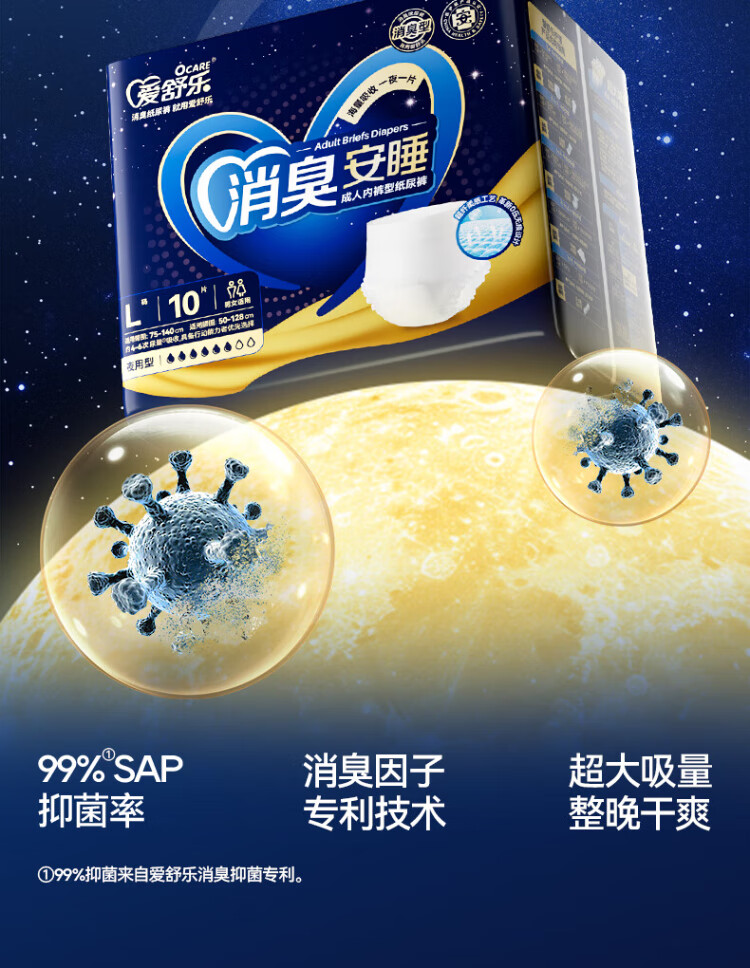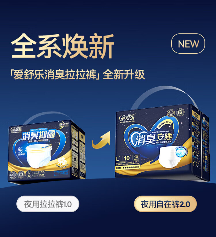 Ashule night-use adult pull-up pants L2 tablets deodorizing underwear type diapers for the elderly and pregnant women diaper trial experience pack