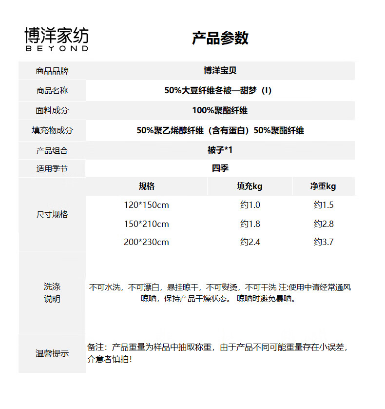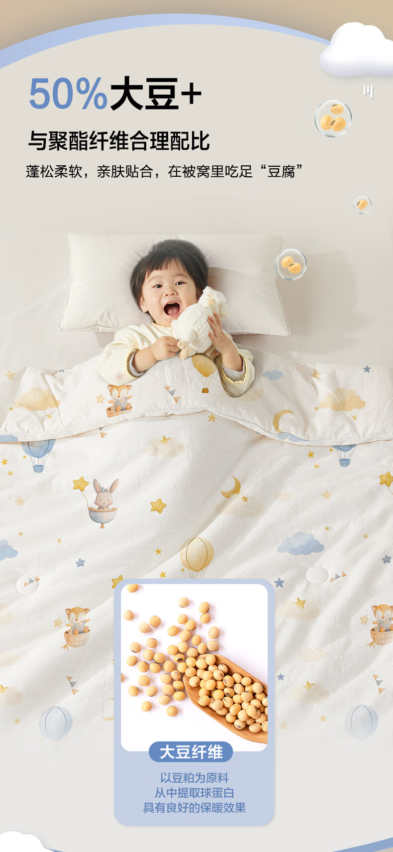 BEYONDHOME BABY Boyang mother and baby 50% soy fiber quilt pure cotton autumn and winter quilt thick quilt kindergarten cover sweet dream 120*150cm