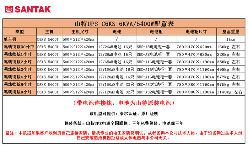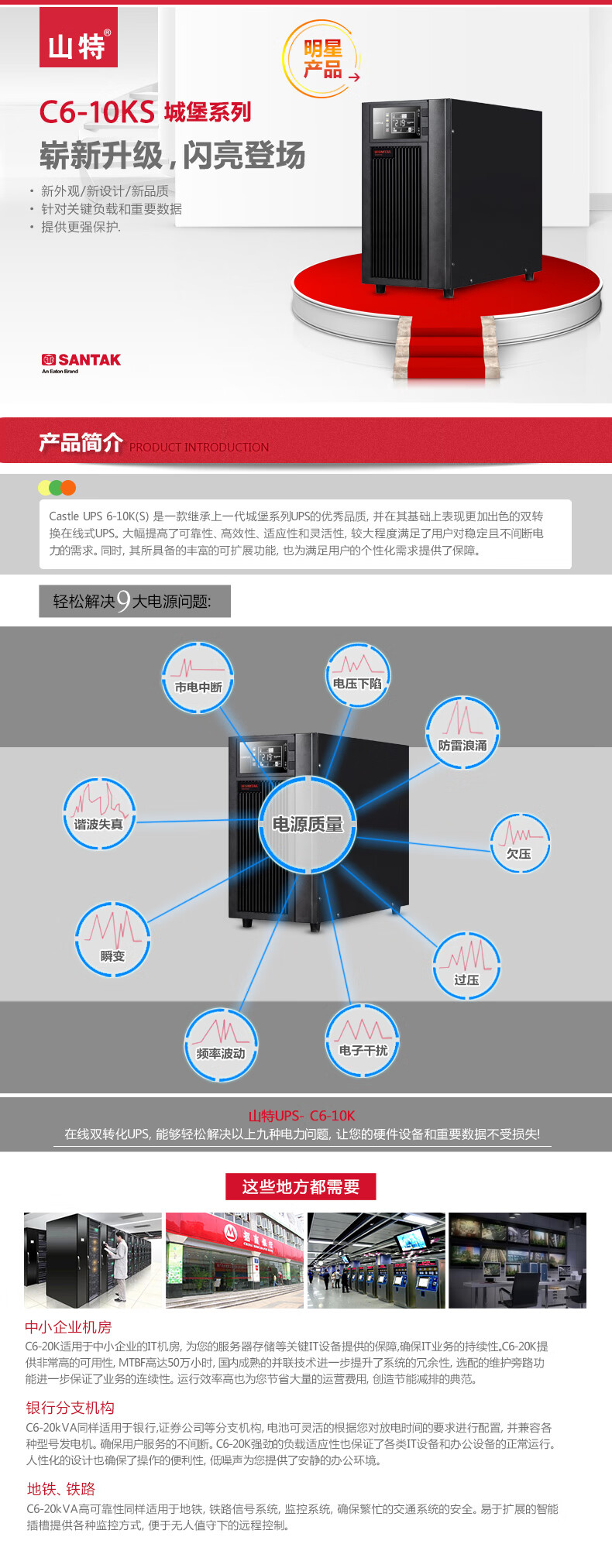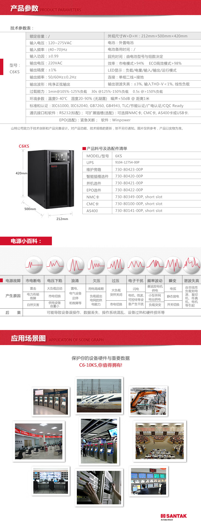 SANTAK C6KS 6KVA/5400W online UPS uninterruptible power supply external battery long-lasting machine fully loaded with 5400W power supply for 2 hours