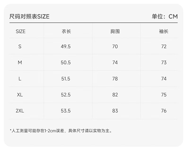 Size (cm) 42 44 46 48 50