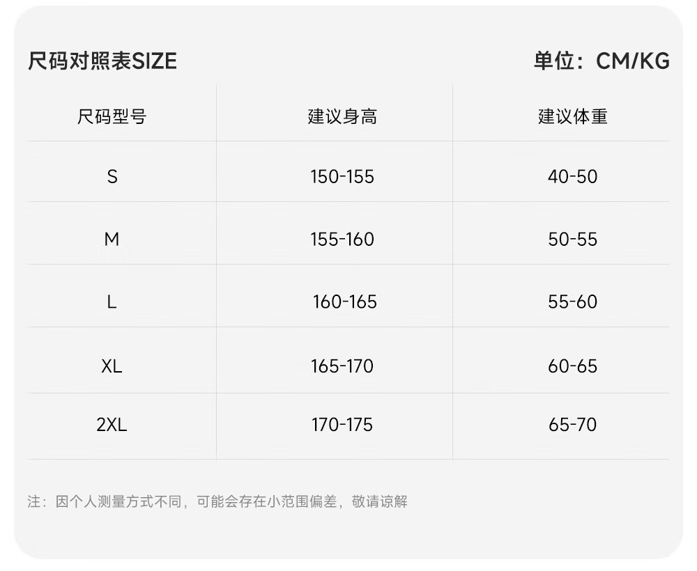 China (cm) 160-165/84-86 165-170 / 88-90 167-172 / 92-96 168-173 / 98-102 170-176 / 106-110