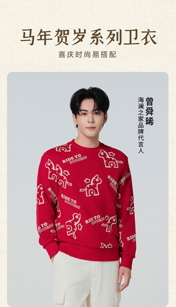 HLA Hailan House sweatshirt men's spring 26 Zeng Shunxi's same style Year of the Horse New Year series long-sleeved men's HNZWW1F025A