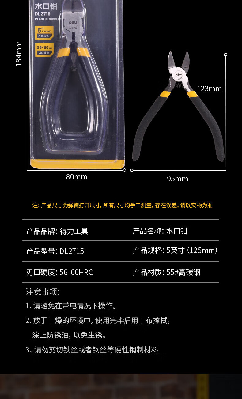 Deli non-slip nozzle pliers nozzle scissors electronic scissors plastic pliers diagonal pliers 5 inches DL2715