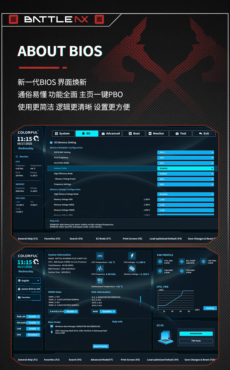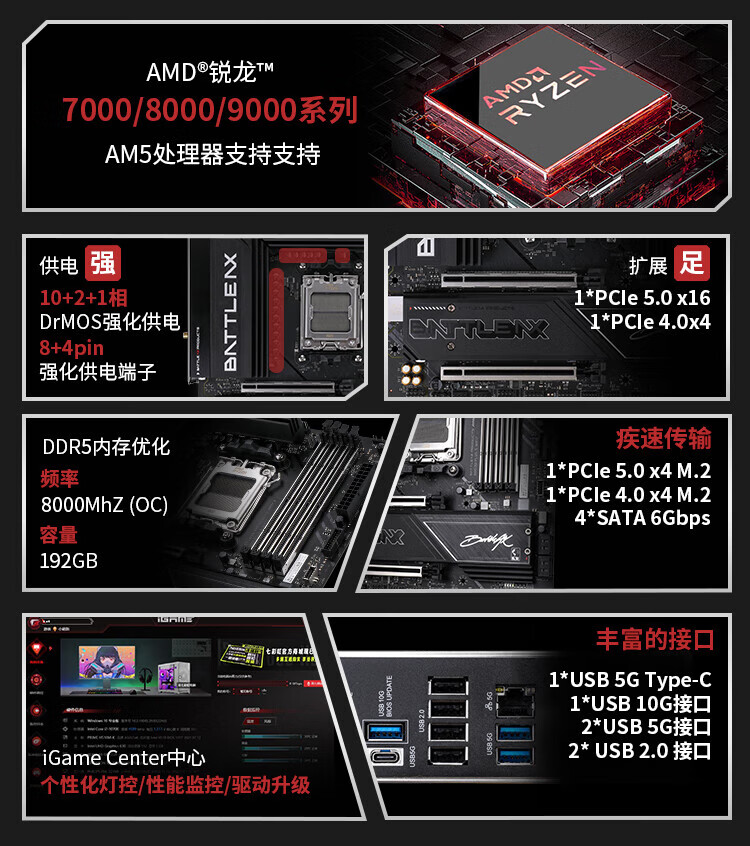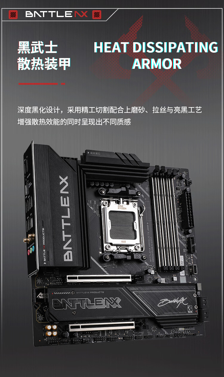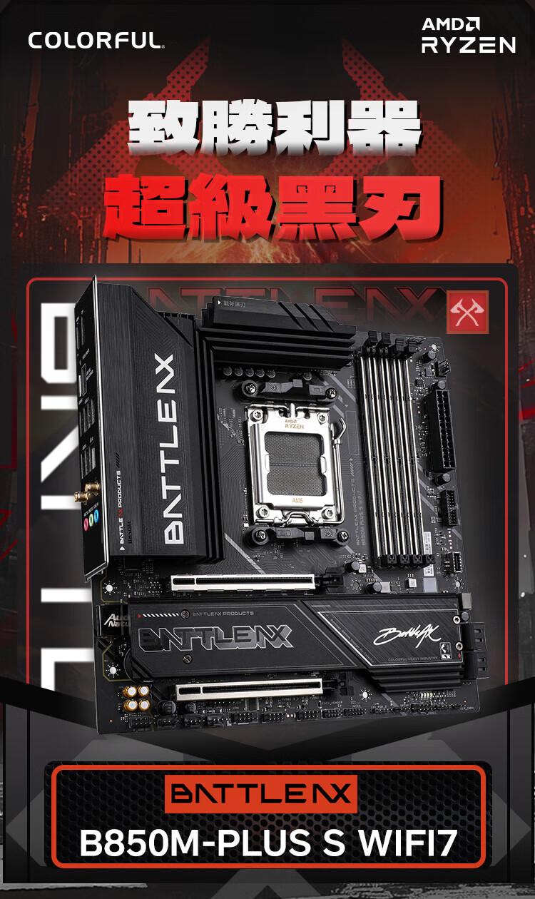 Colorful BATTLE-AX B850M-PLUS S WIFI7 V14 Super Black Blade motherboard supports CPU 7800X3D/9800X3D/9700X (AMD B850/ AM5)