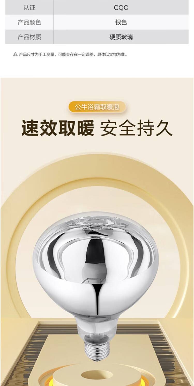 Bull (BULL) Yuba heating bubble E27 screw replacement lamp heater HW220-275-AE 275W high power heating H183 (mm)