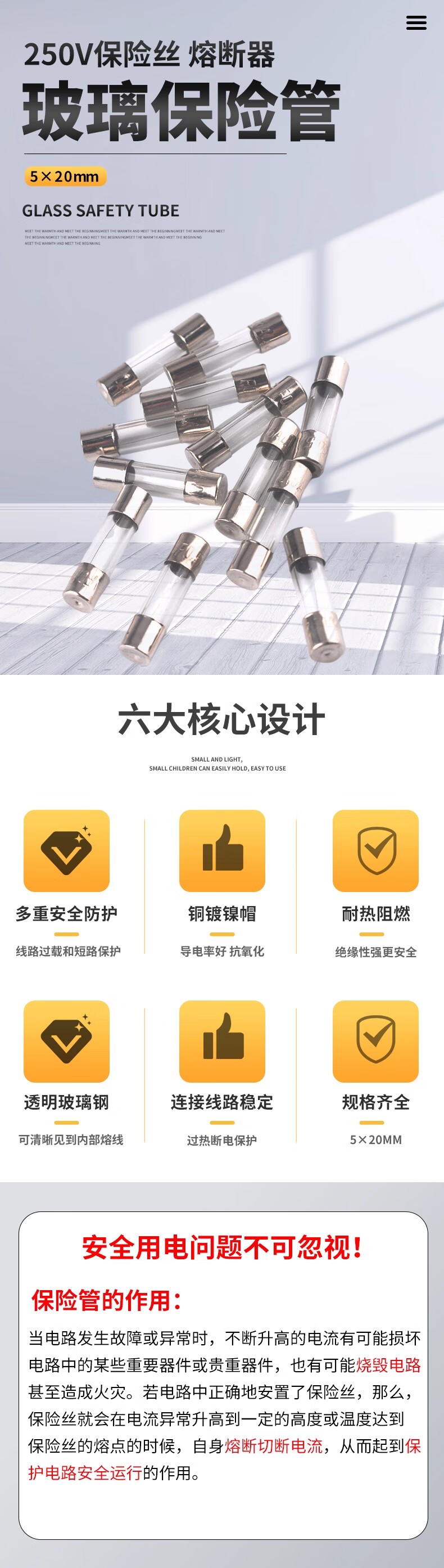 ZAVE fuse glass fuse fuse 6*30mm 4A (100 pieces/box)