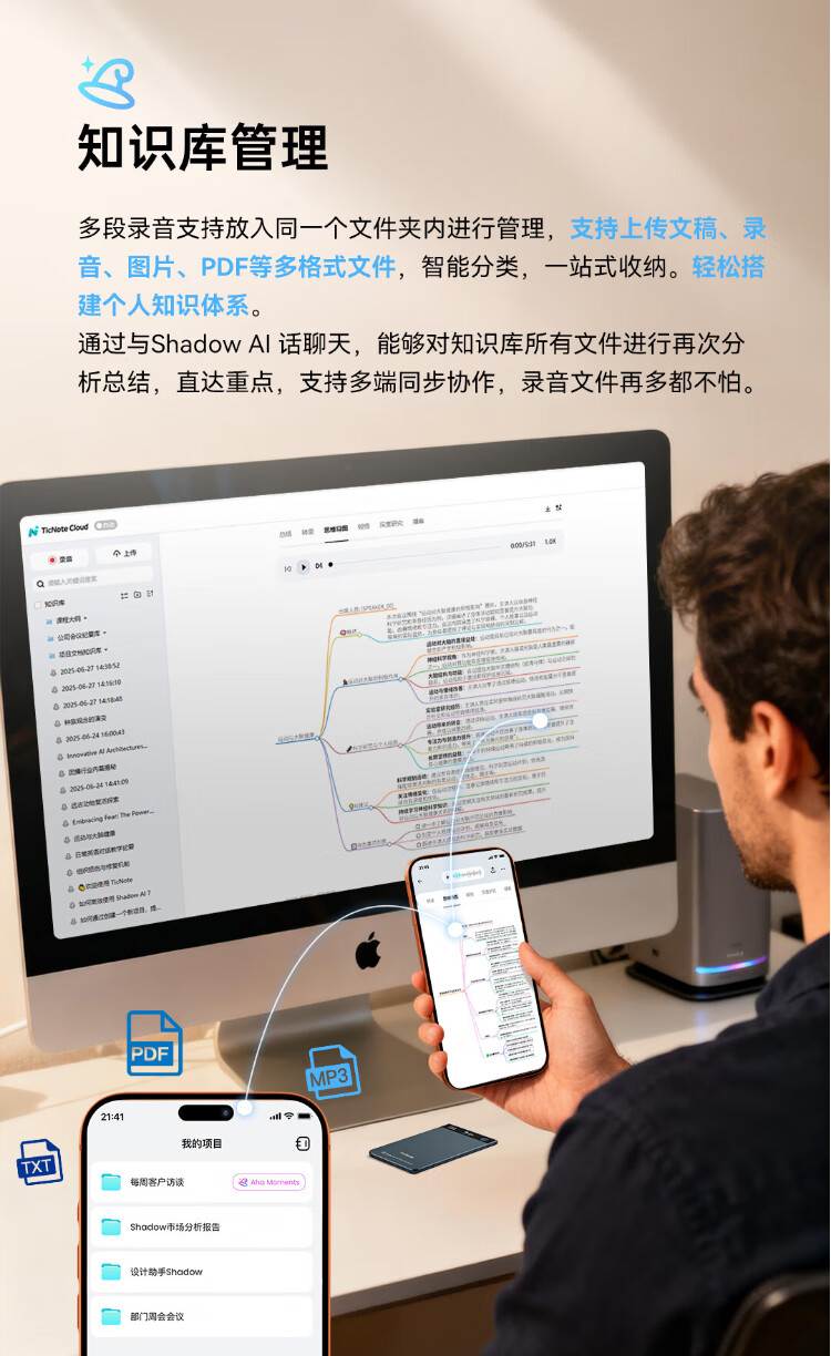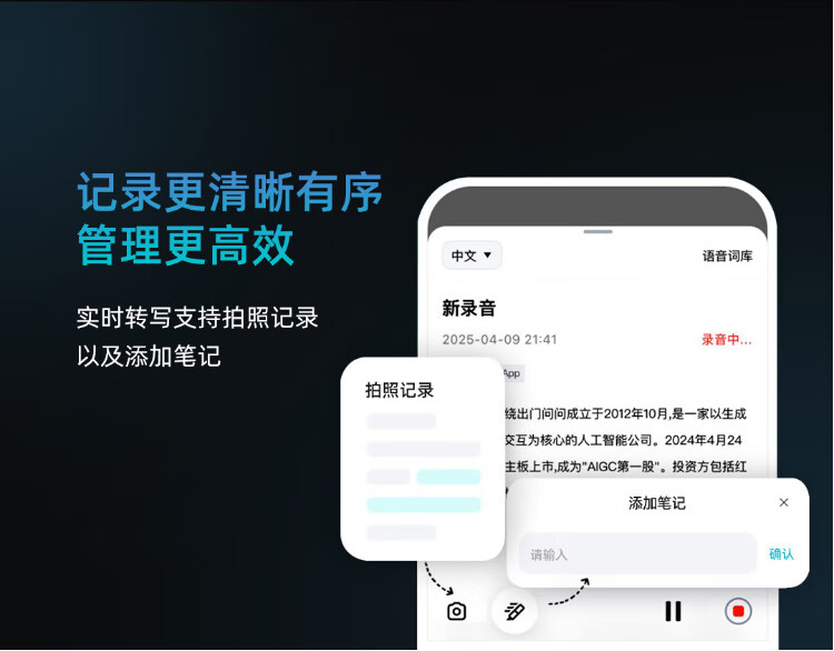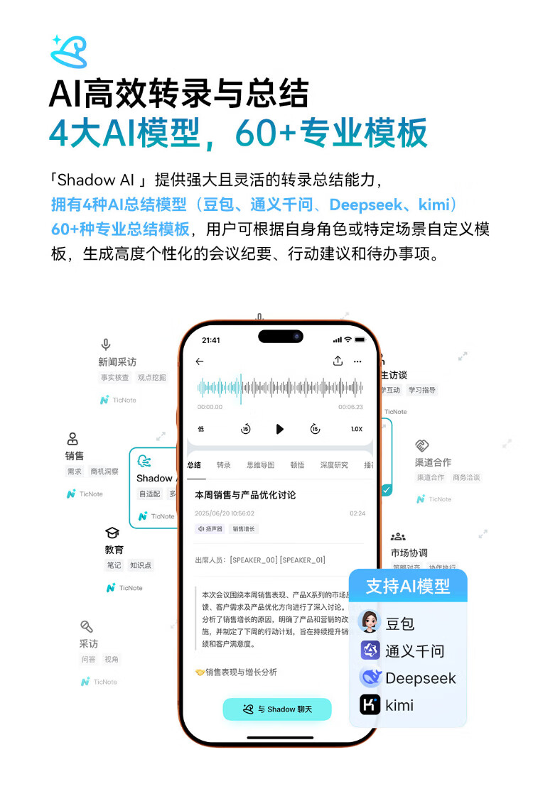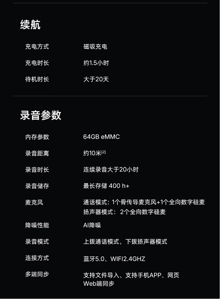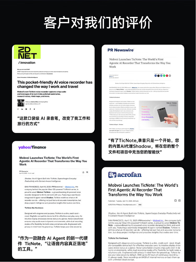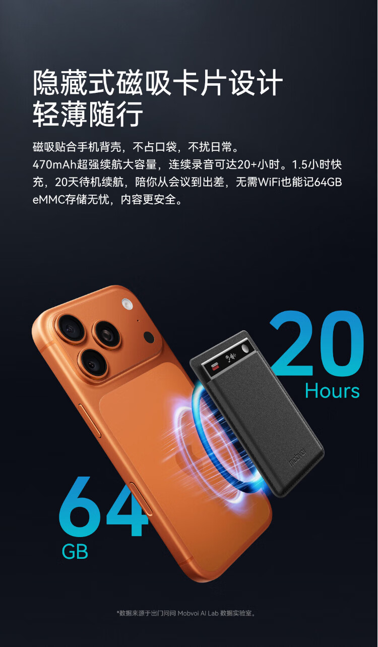 Mobvoi TicNote AI Recorder Enjoy Edition Obsidian Black Recording to Text Recording Card Intelligent Noise Reduction Portable Professional Recording Equipment Recorder Minutes Summary