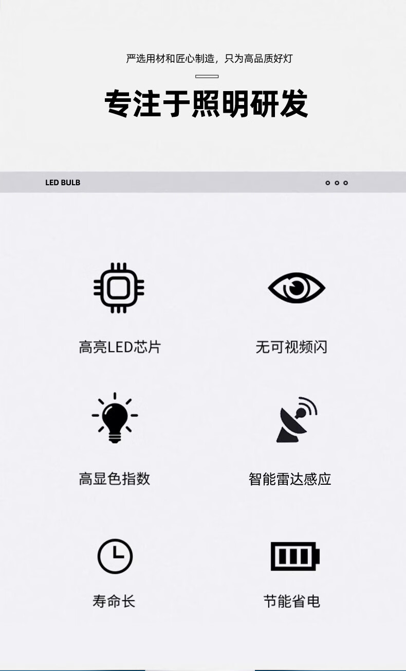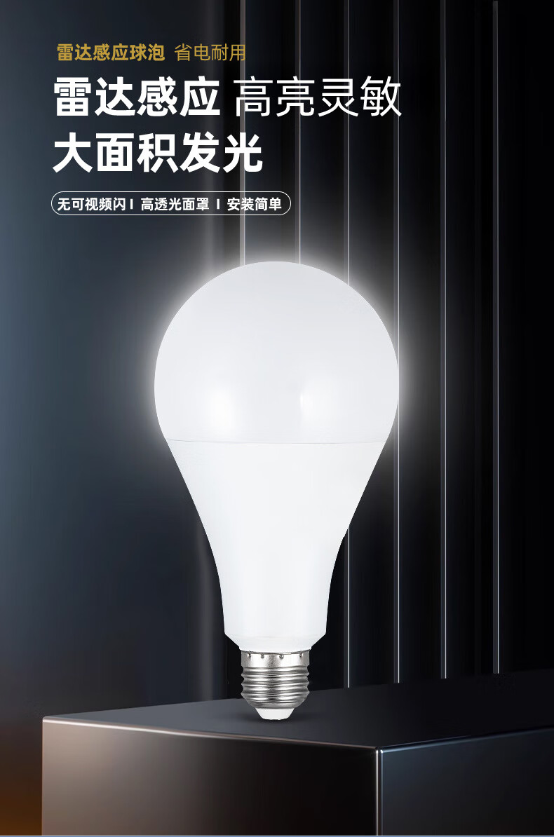 Gongtai LED radar sensor bulb 9W white light 6500K E27 screw bulb lamp high brightness and high transmittance GT-LDP-9W