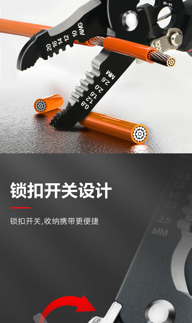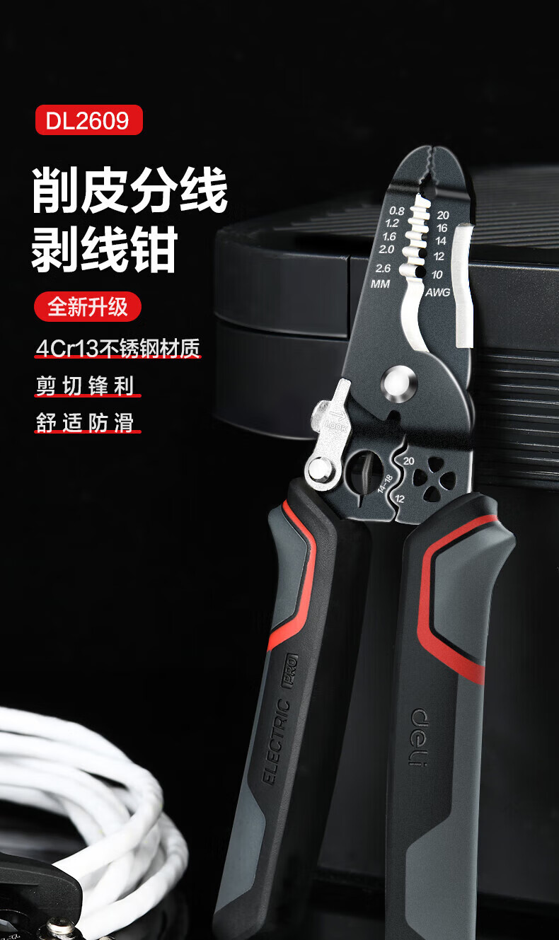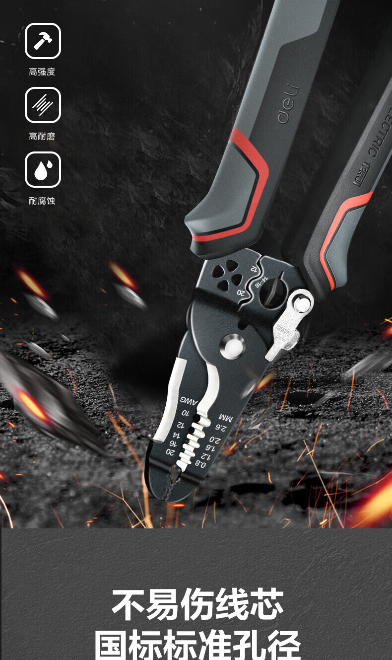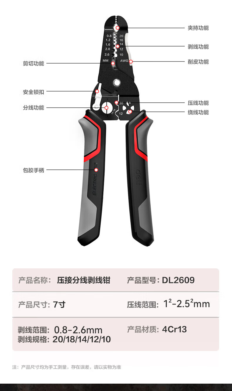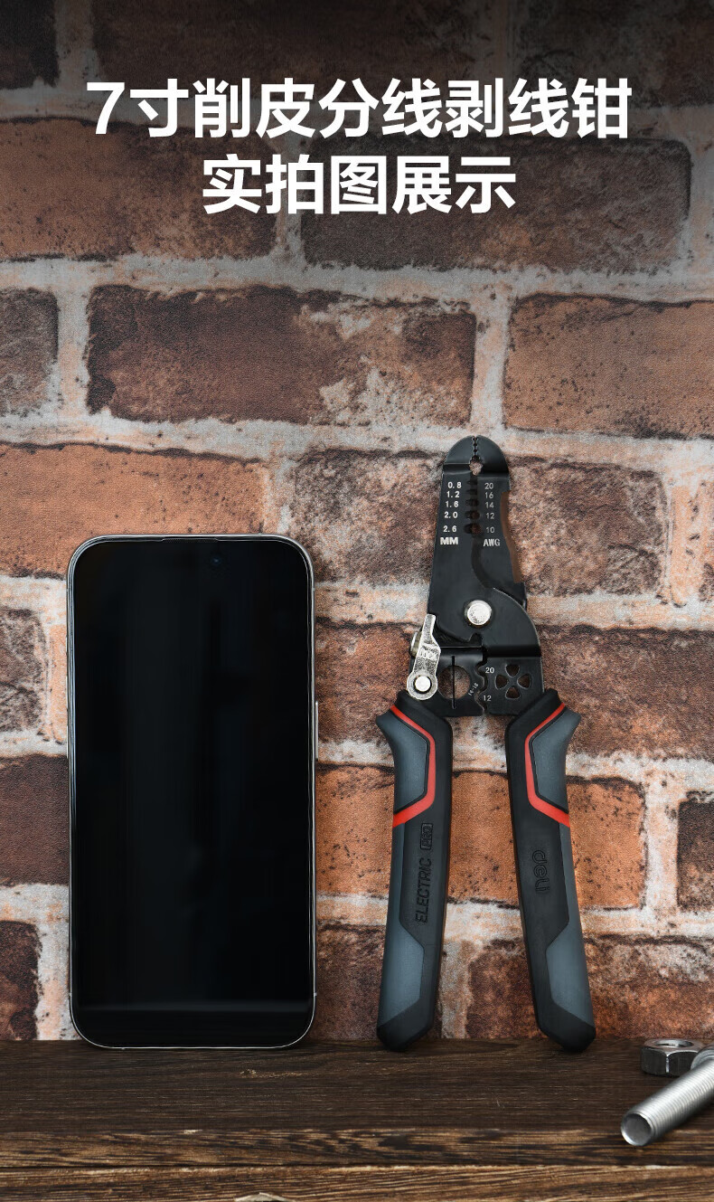 Deli Wire Stripping Pliers Electrician's Pliers Wire Dial Pliers Stainless Steel Multifunctional Wire Cutting Pliers 7 Inch 0.8-2.6mm DL2609