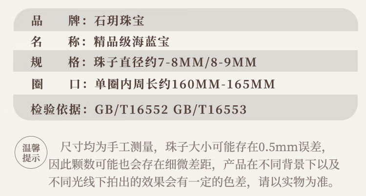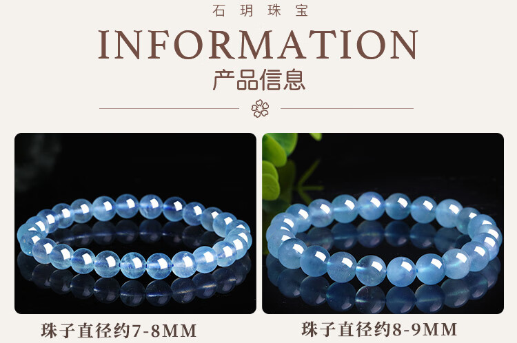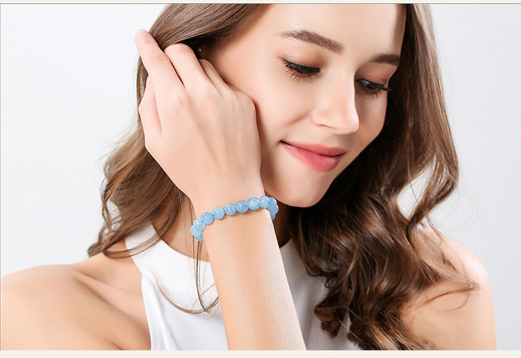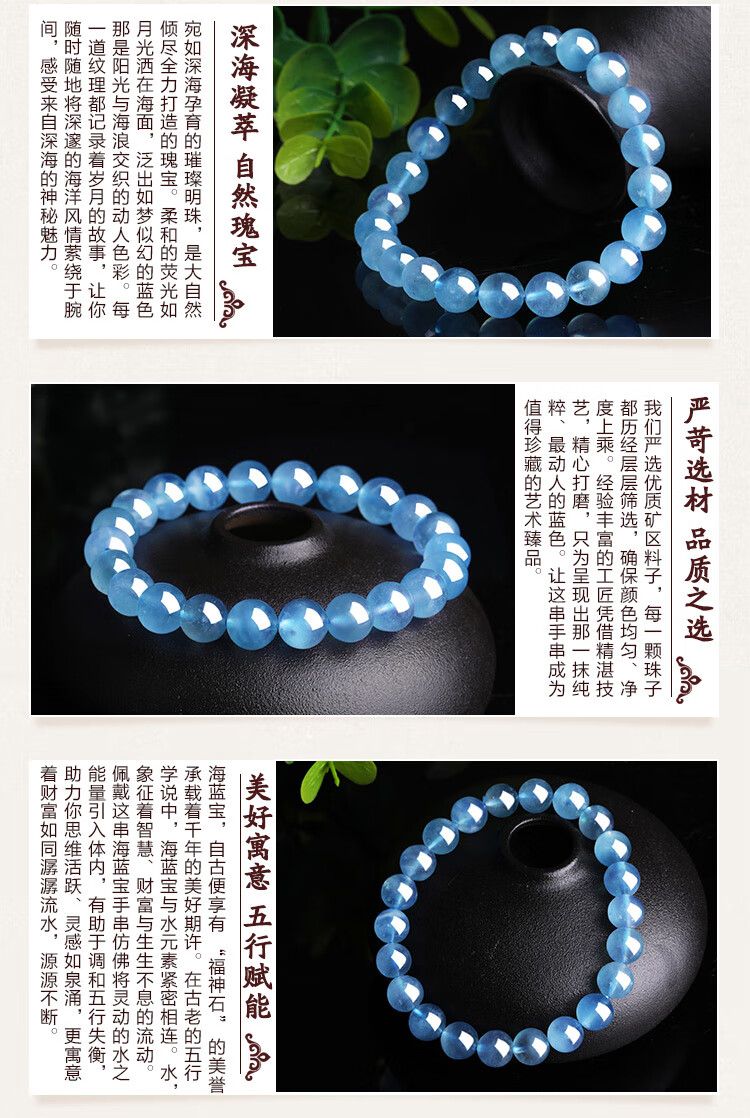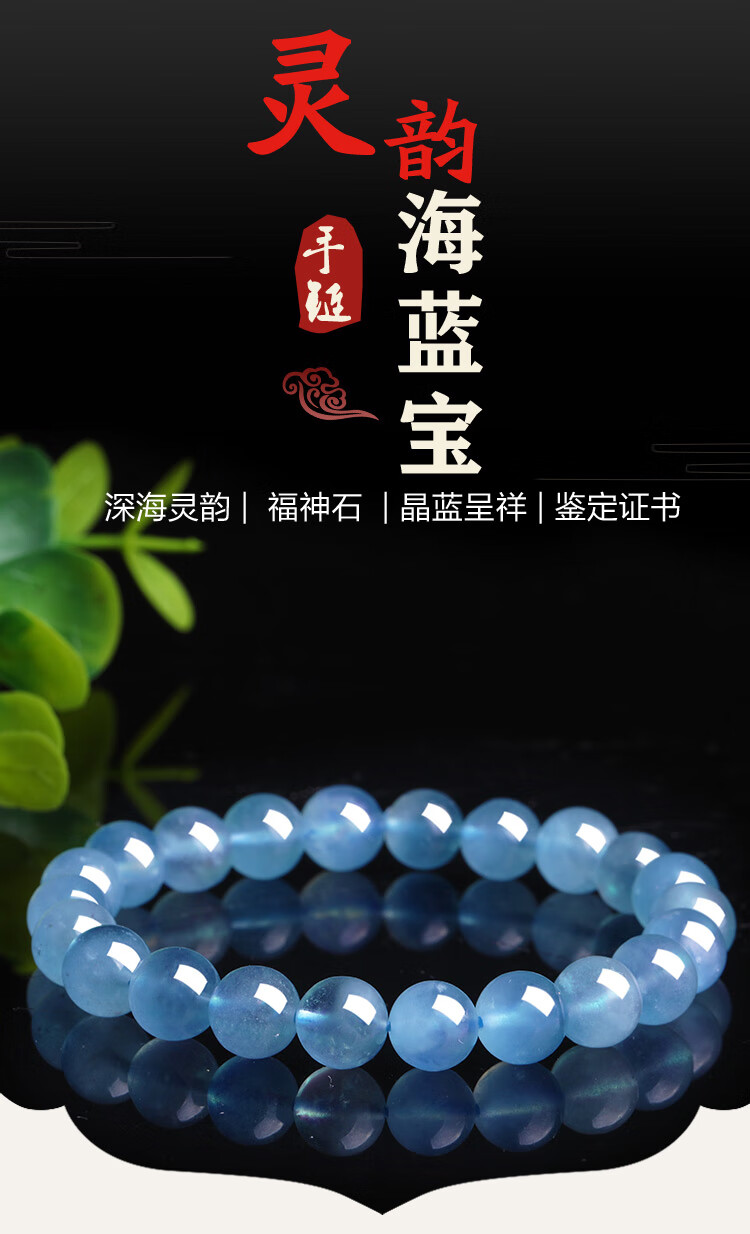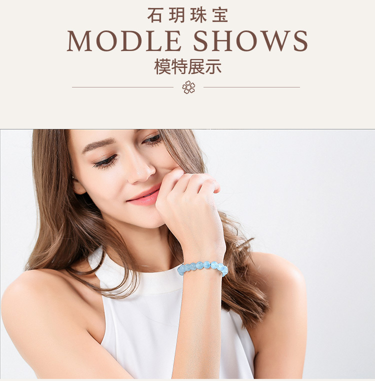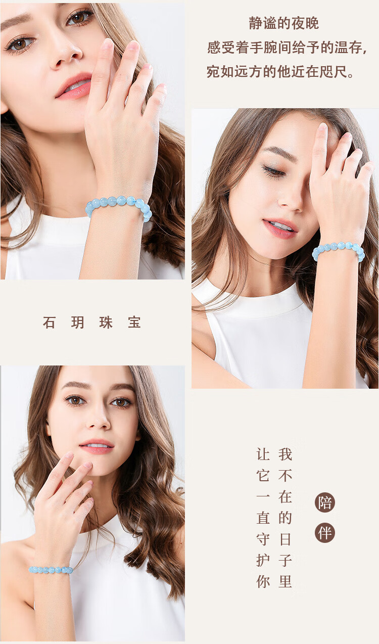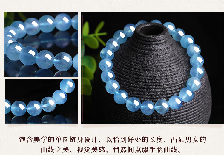 石玥珠宝8-9mm精品海蓝宝石手串本命年转运珠天然水晶手链男女士款礼物