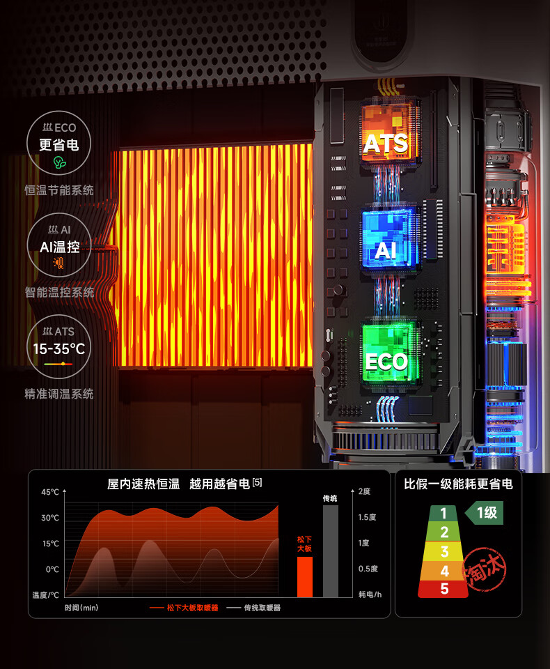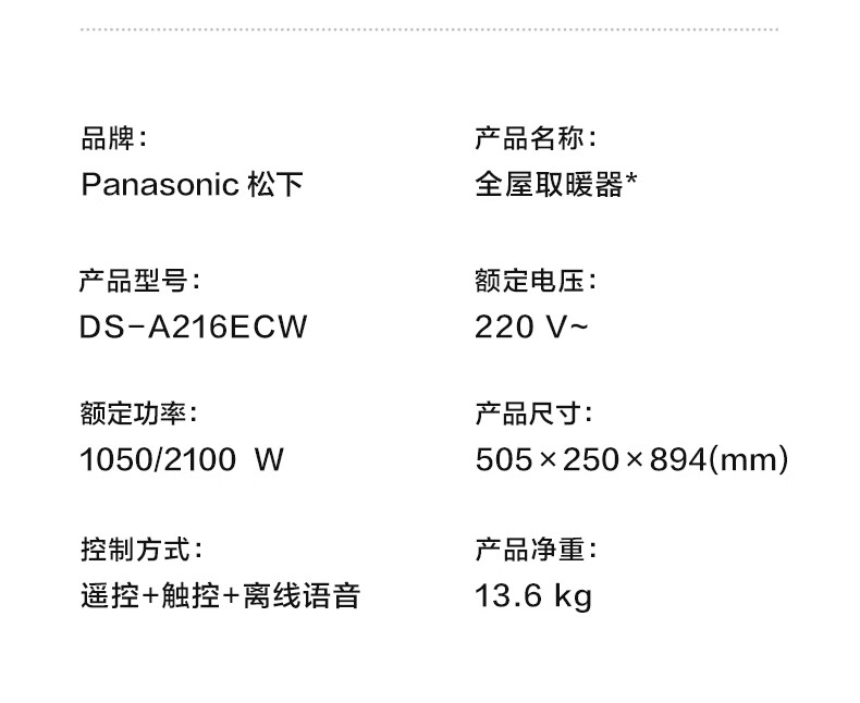 Panasonic graphene heater home heater whole house heating fast heating electric heating artifact European fast heating furnace large area whole house convection living room electric heater DS-A216ECW