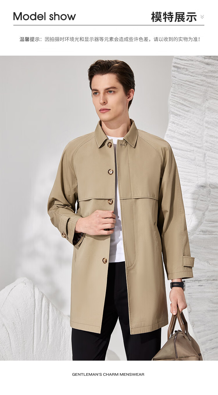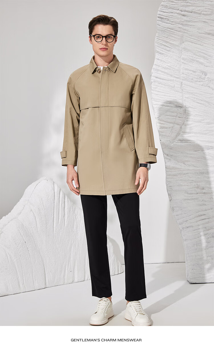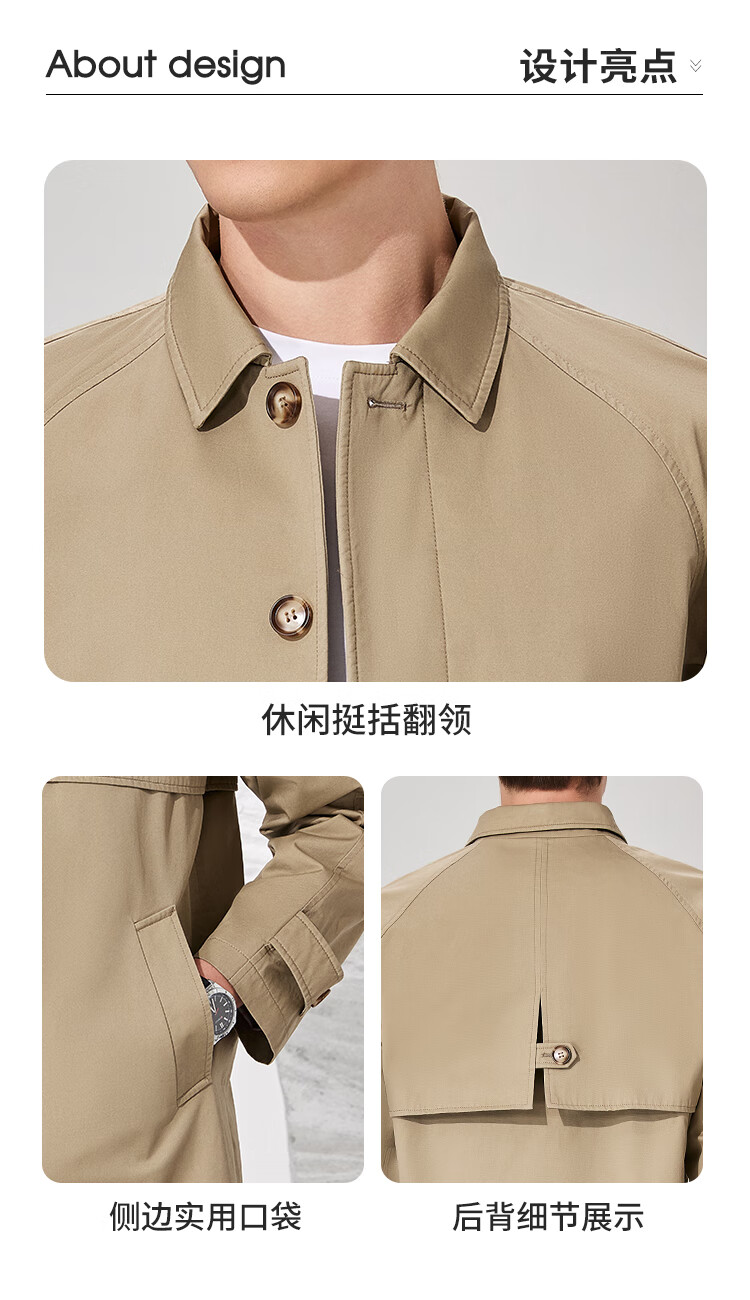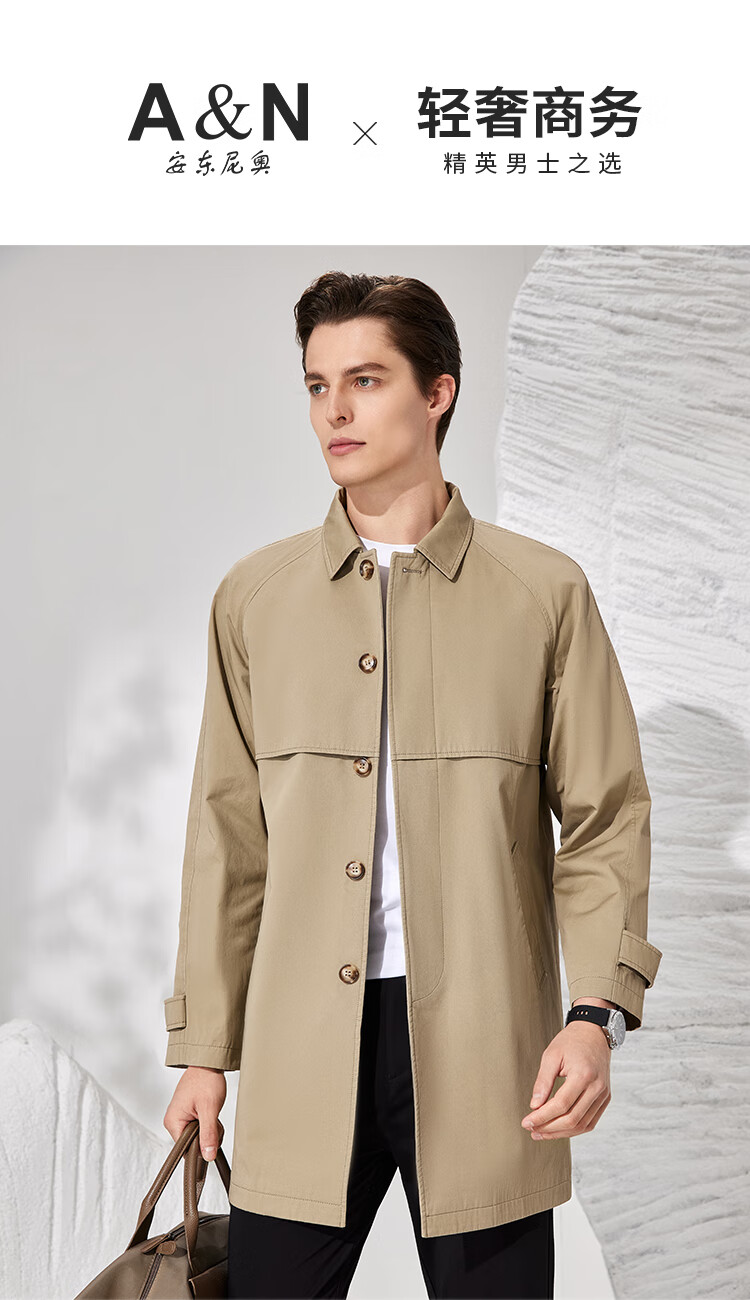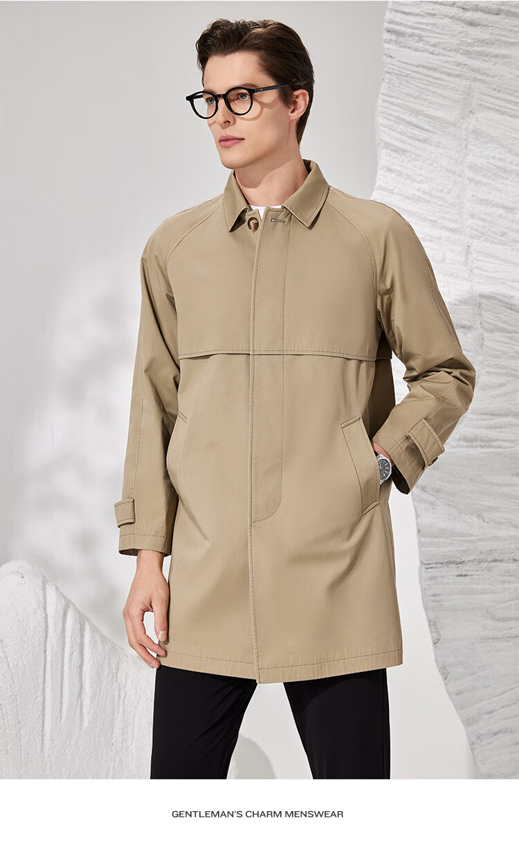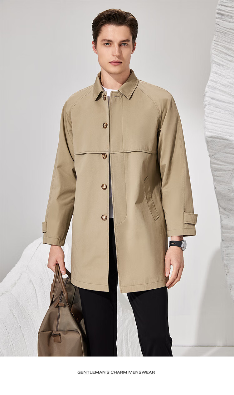 Antonio 100% combed long-staple cotton crisp lapel easy-care mid-length windbreaker men's business casual jacket