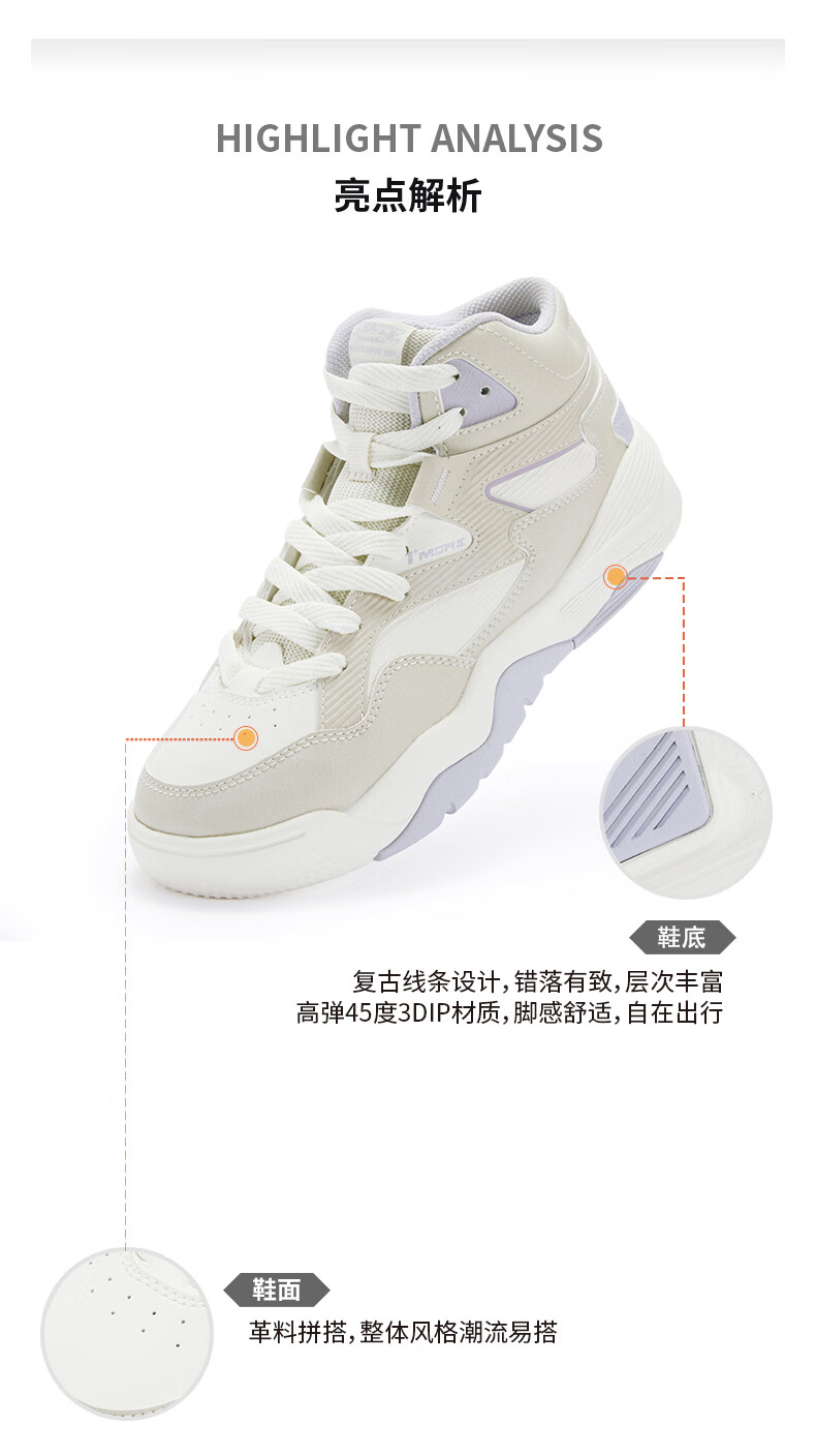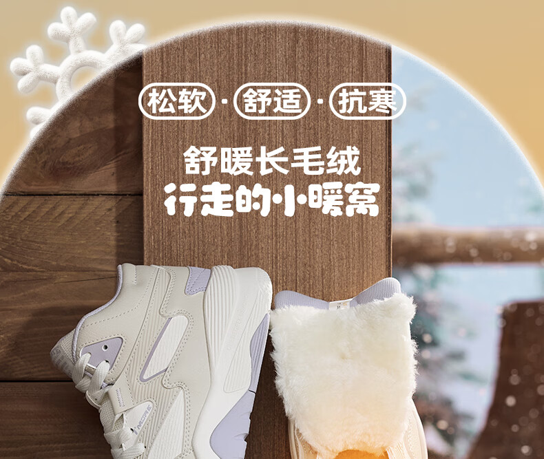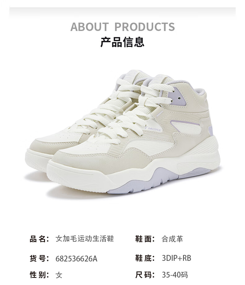361 women's sports shoes for autumn and winter new high-top cotton shoes plus velvet warm casual sneakers 682536626A-2
