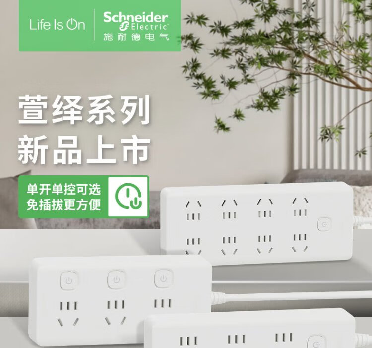 Schneider Electric plug strip/socket board/socket/socket/one-turn-multiple/conversion plug/trailer board with wired household converter 3-position five-hole 1.8 meters total control