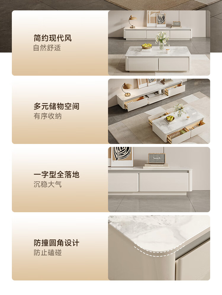 CHEERS rock slab living room and tea room for small apartments, cream style, light luxury and high-end sense 2025 new style Chivas Regal CJ183