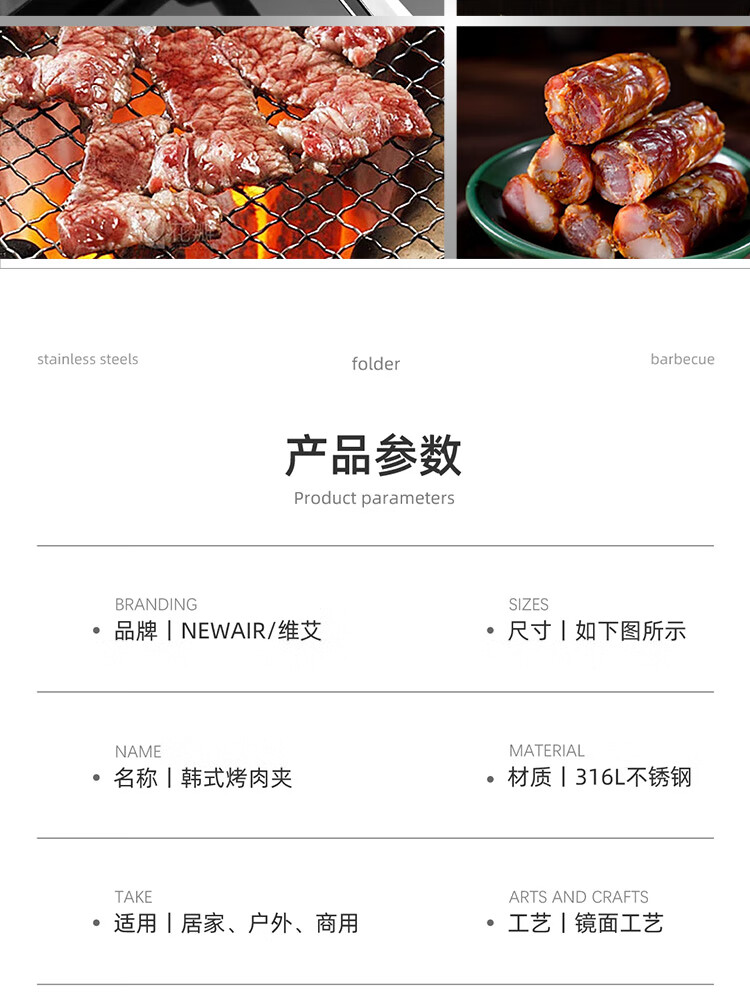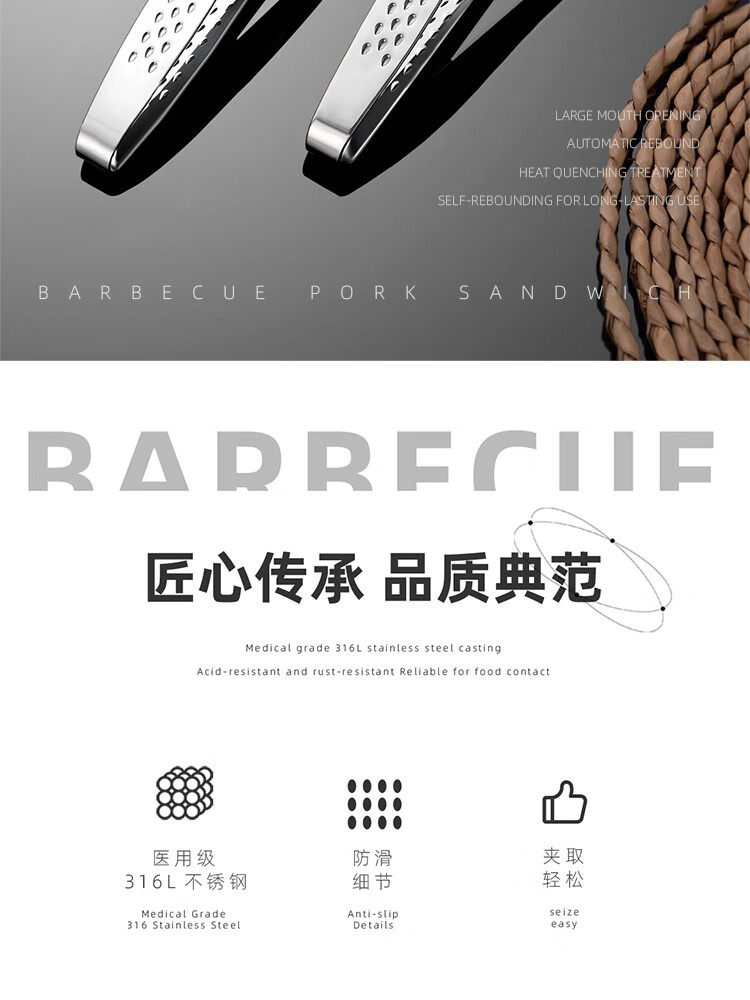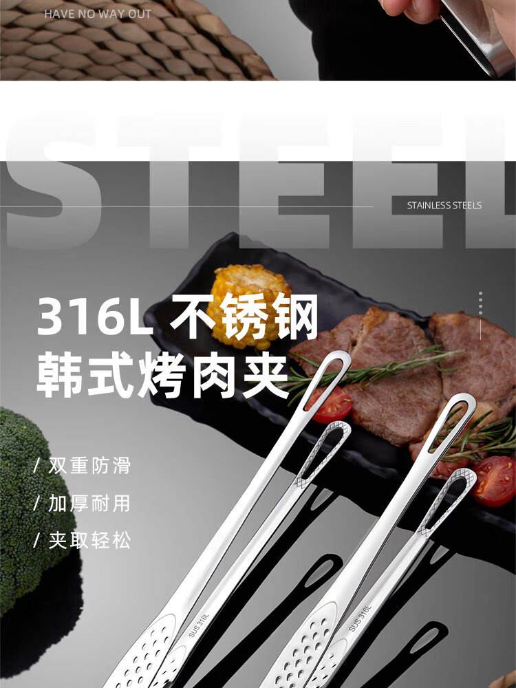Newair 316 stainless steel Korean barbecue clips kitchen frying clips small food clips barbecue special steak clips outdoor anti-scalding