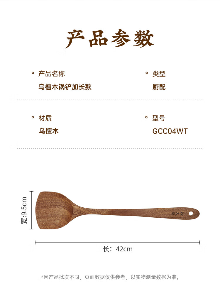Cui Dahuang ebony spatula, extended and anti-scalding, household cooking spatula, non-stick pot, special for high temperature resistance
