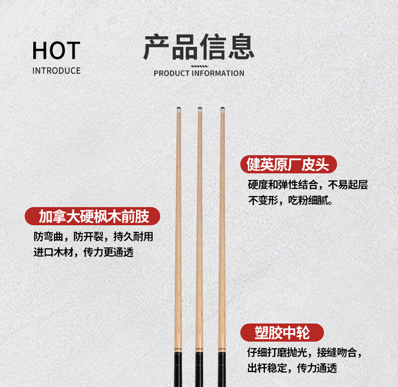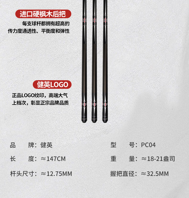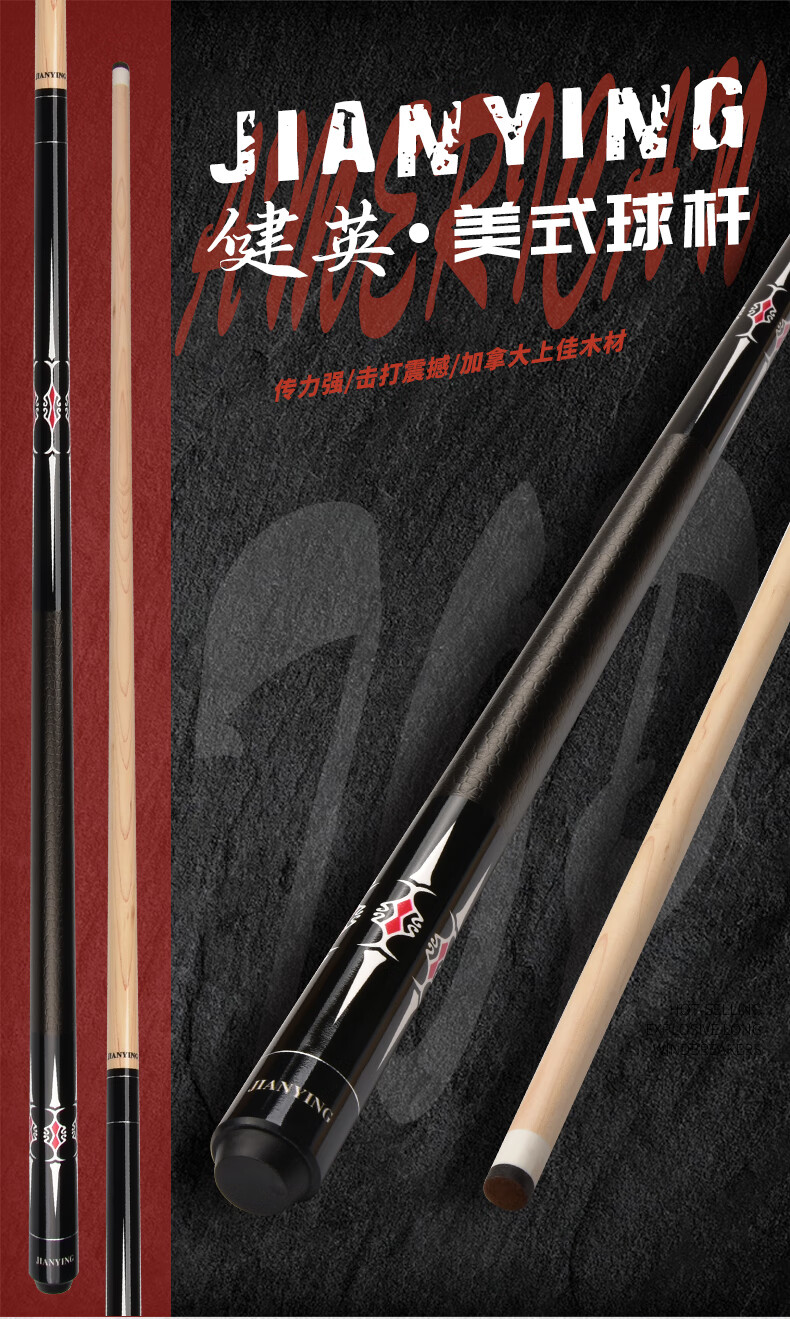 Jianying billiard cue big head Chinese black 8 eight ball American nine cue split single billiard cue ball room public cue PC04 PC04 1 piece