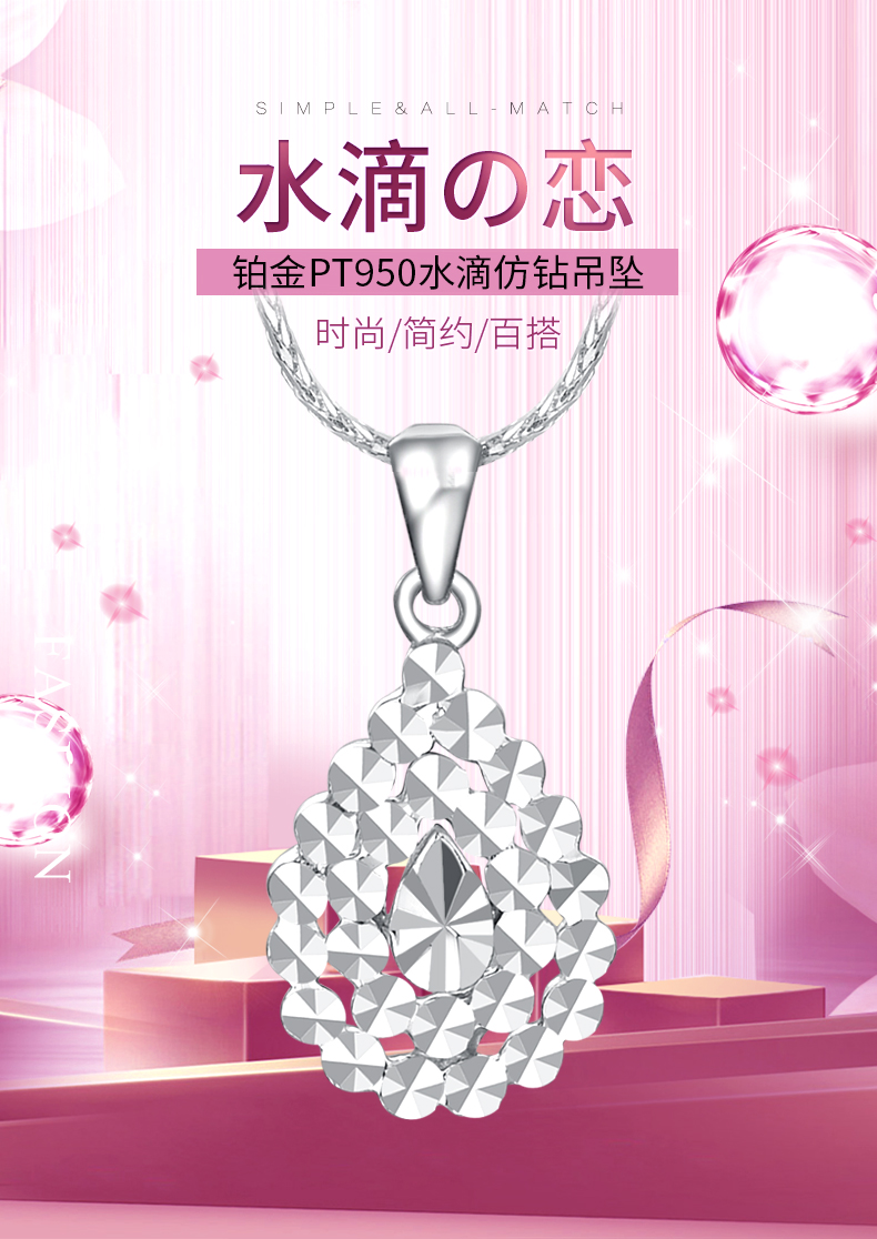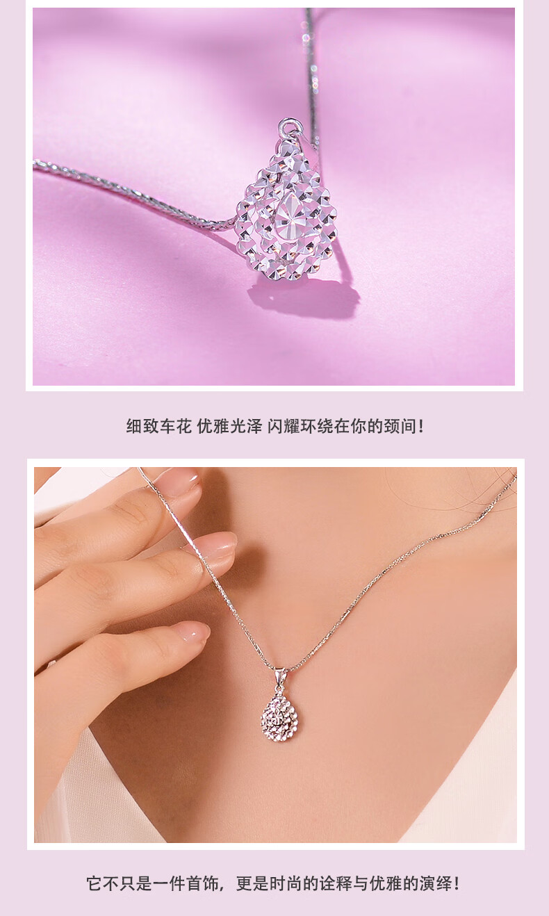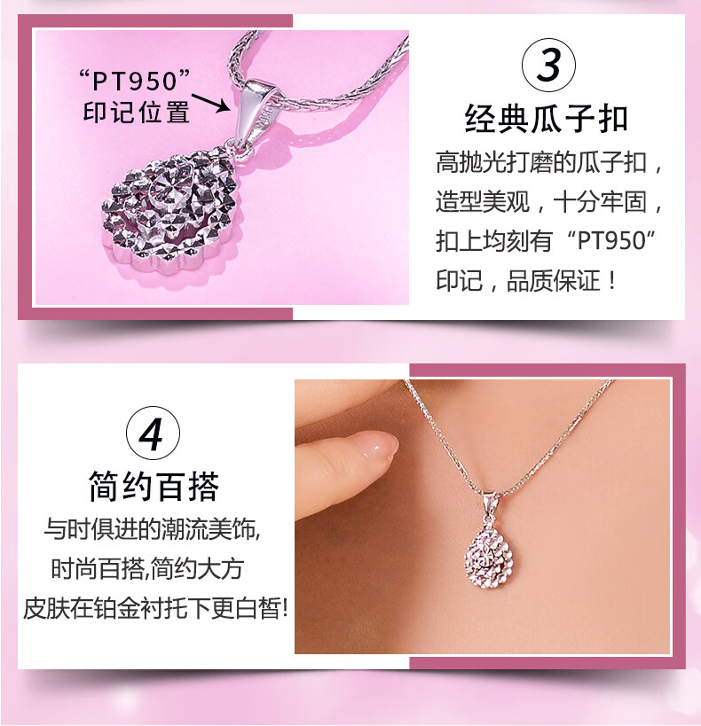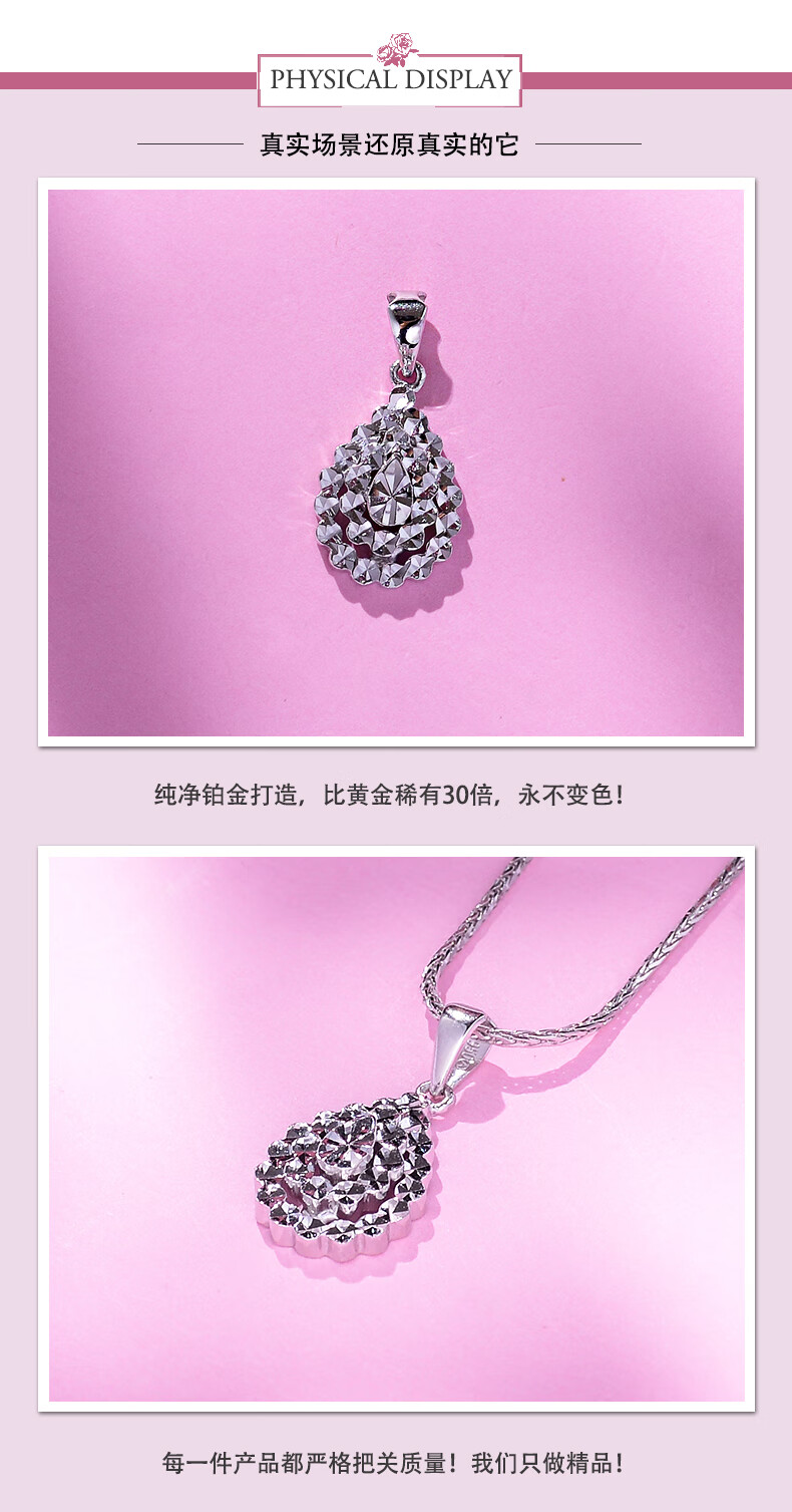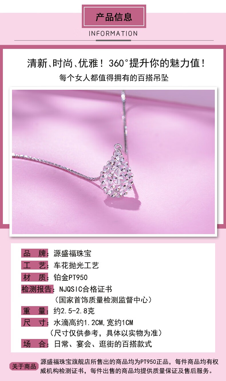 Yuan Shengfu's new PT950 high-quality imitation diamond and water drop platinum pendant, fashionable and versatile platinum necklace pendant, 1.63 grams