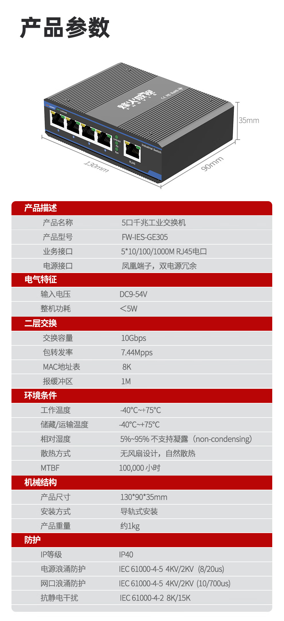 FiberHome Industrial Grade Switch Ethernet Switch 100M Gigabit 5 Ports 8 Ports 16 Ports 24 Ports Switch Network Splitter Splitter Hub Rail Type/Card Rail Type Industrial Grade 100M 5 Ports FH-305F Includes 24V power supply