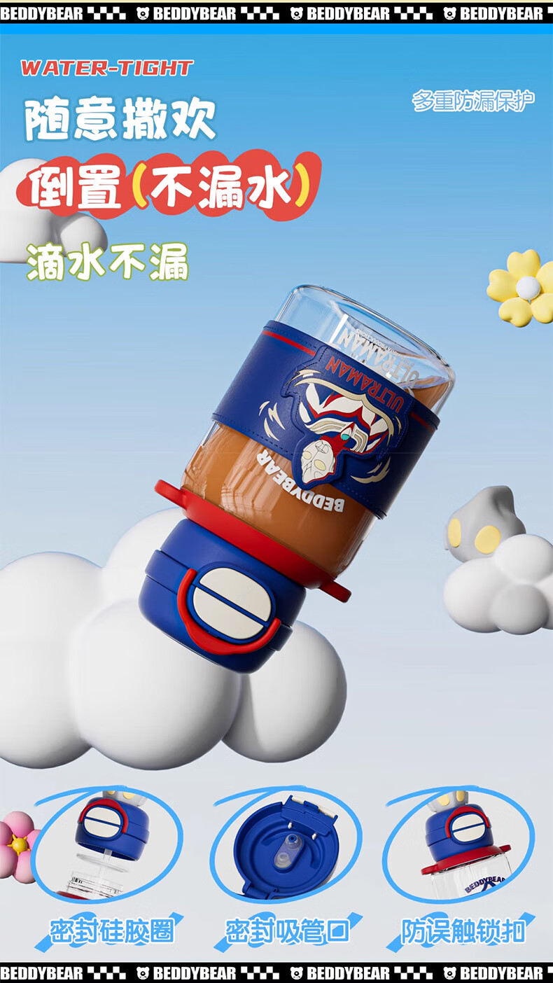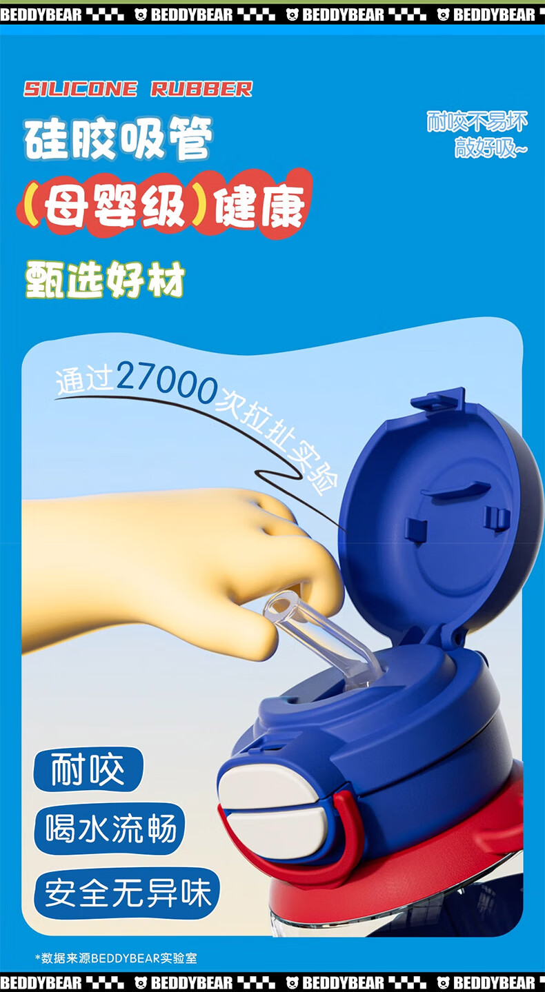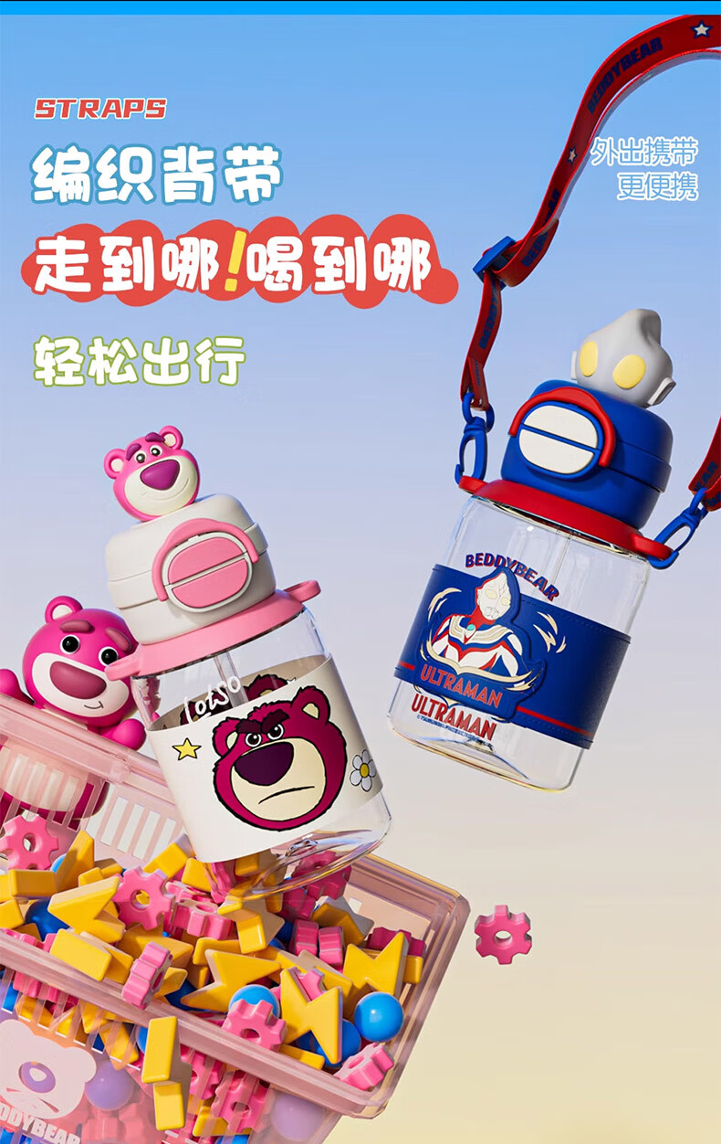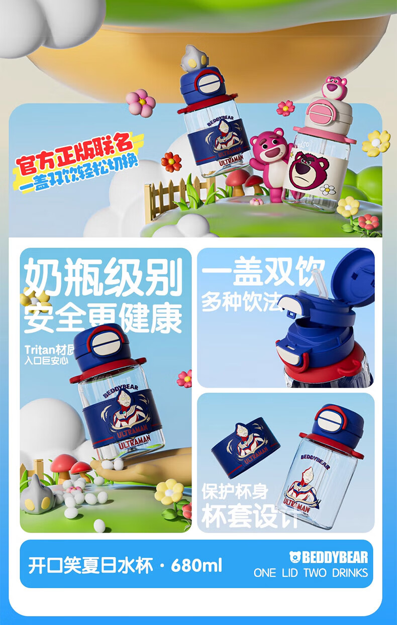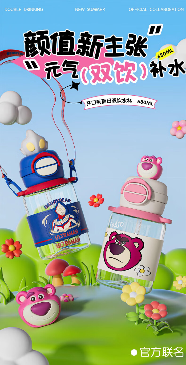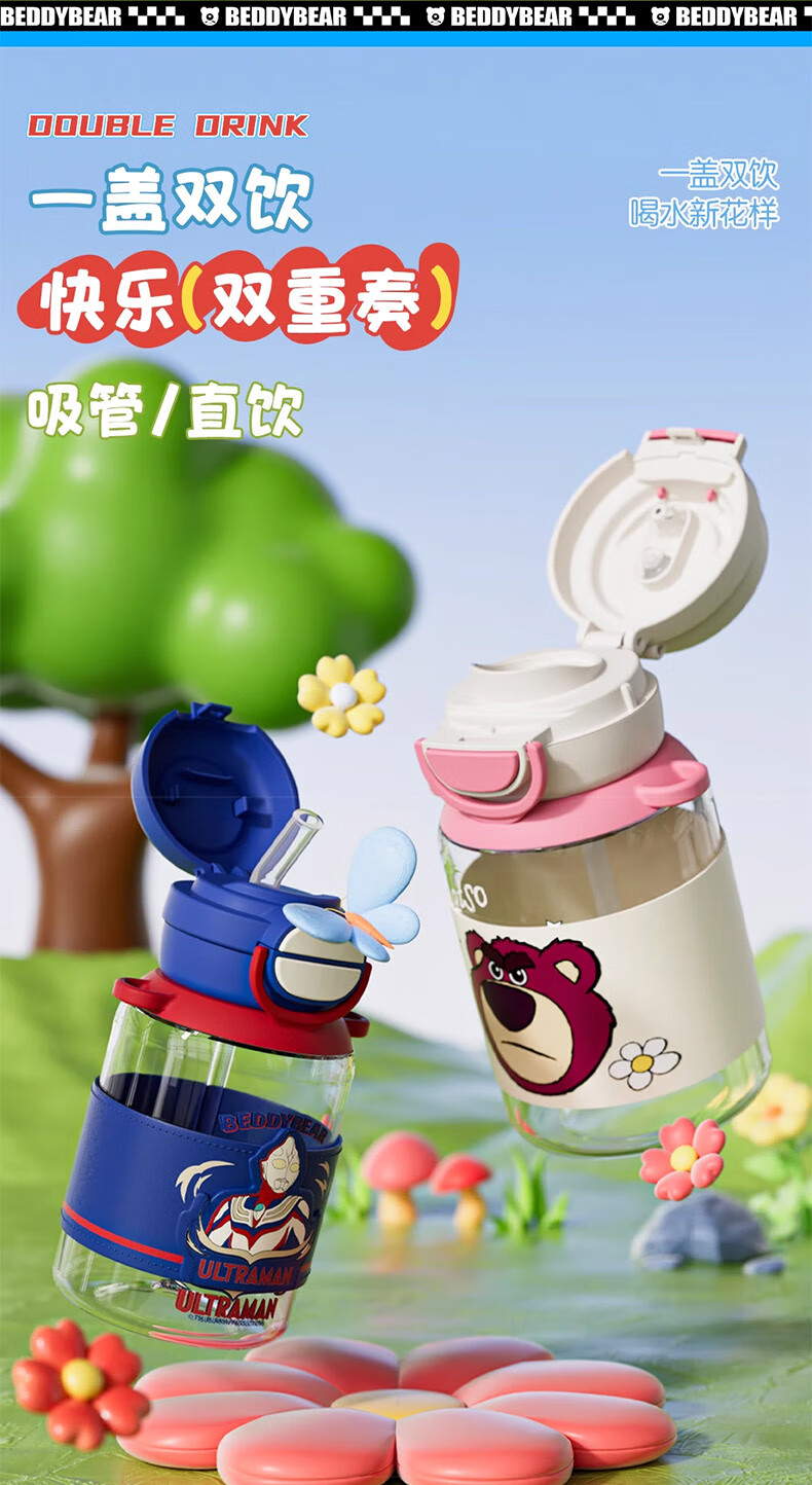 BEDDYBEAR Double Drink Children's Water Cup High Temperature Resistant Plastic Cup Portable Large Capacity Student Straw Cup 680ML Coolomi