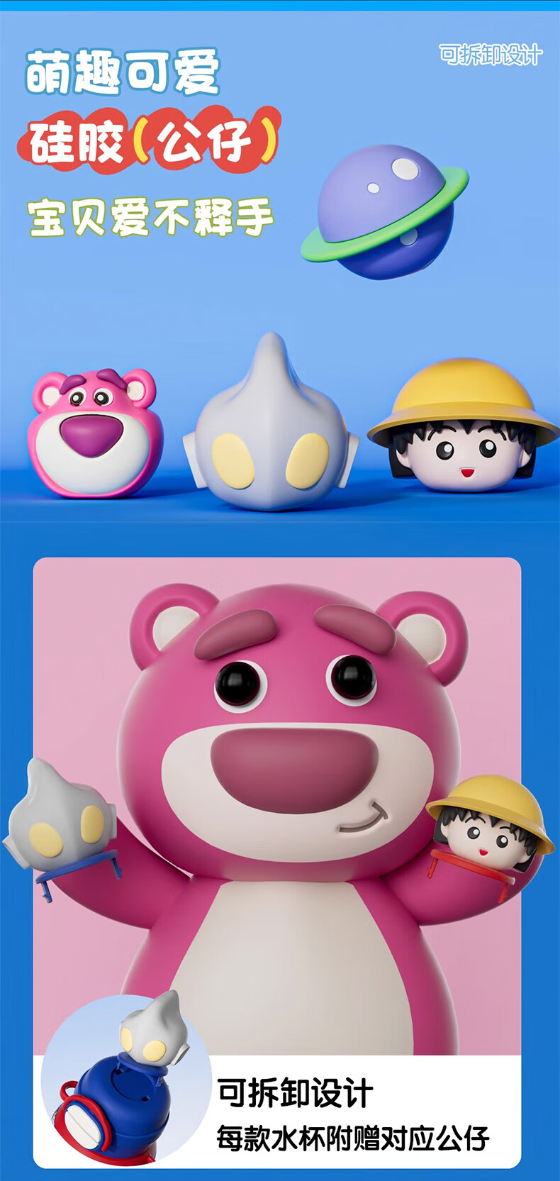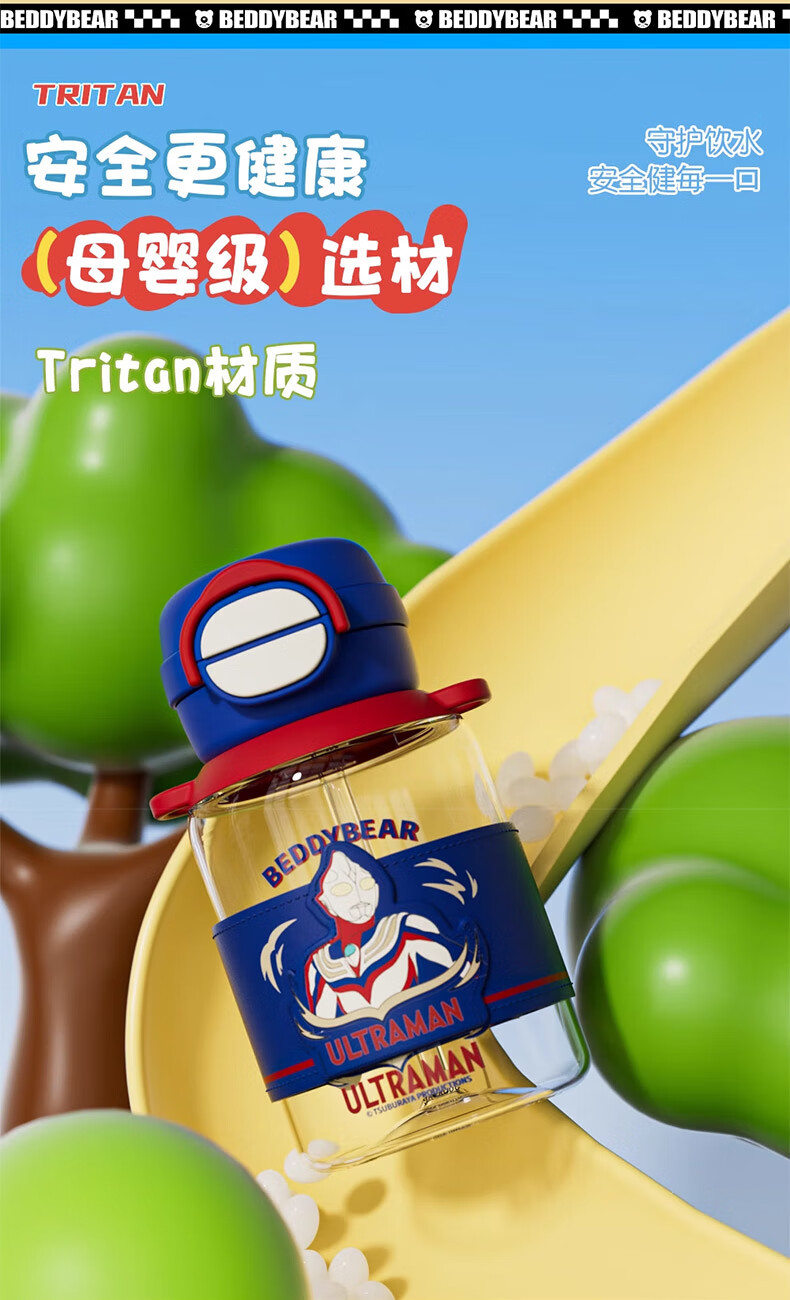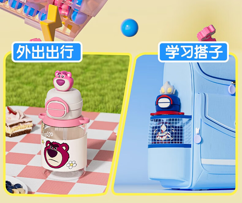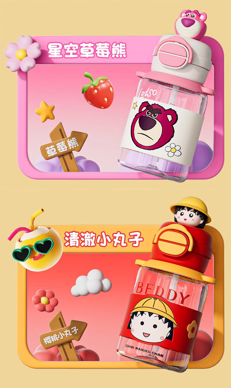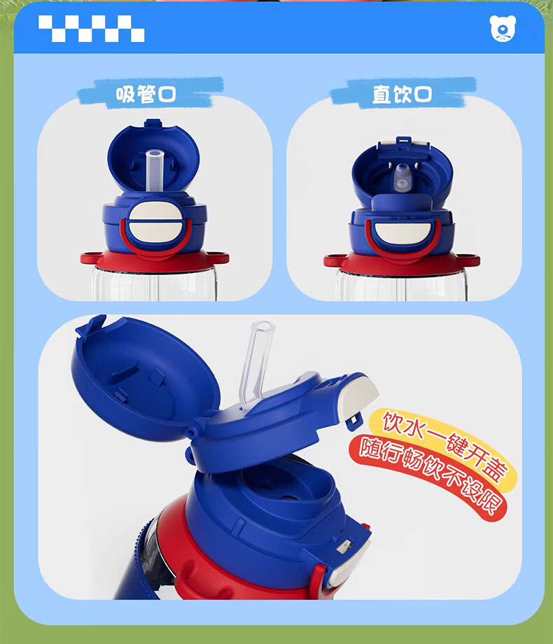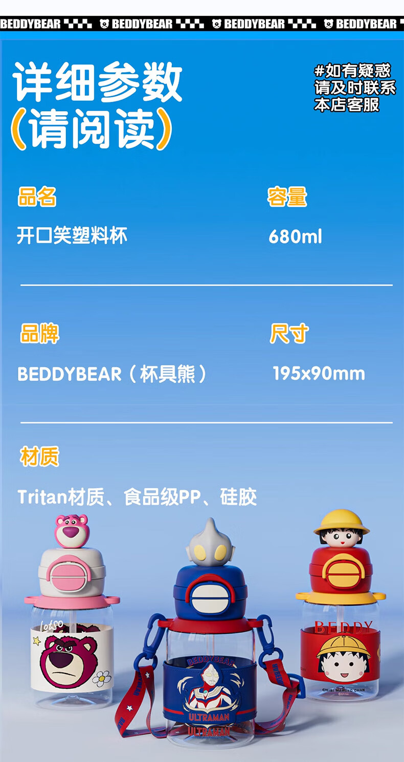 BEDDYBEAR Double Drink Children's Water Cup High Temperature Resistant Plastic Cup Portable Large Capacity Student Straw Cup 680ML Coolomi