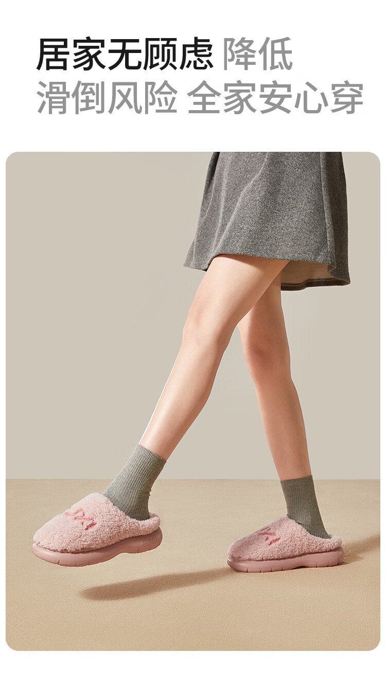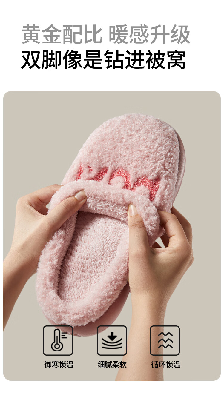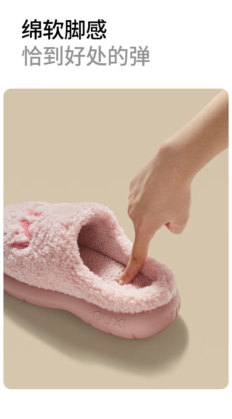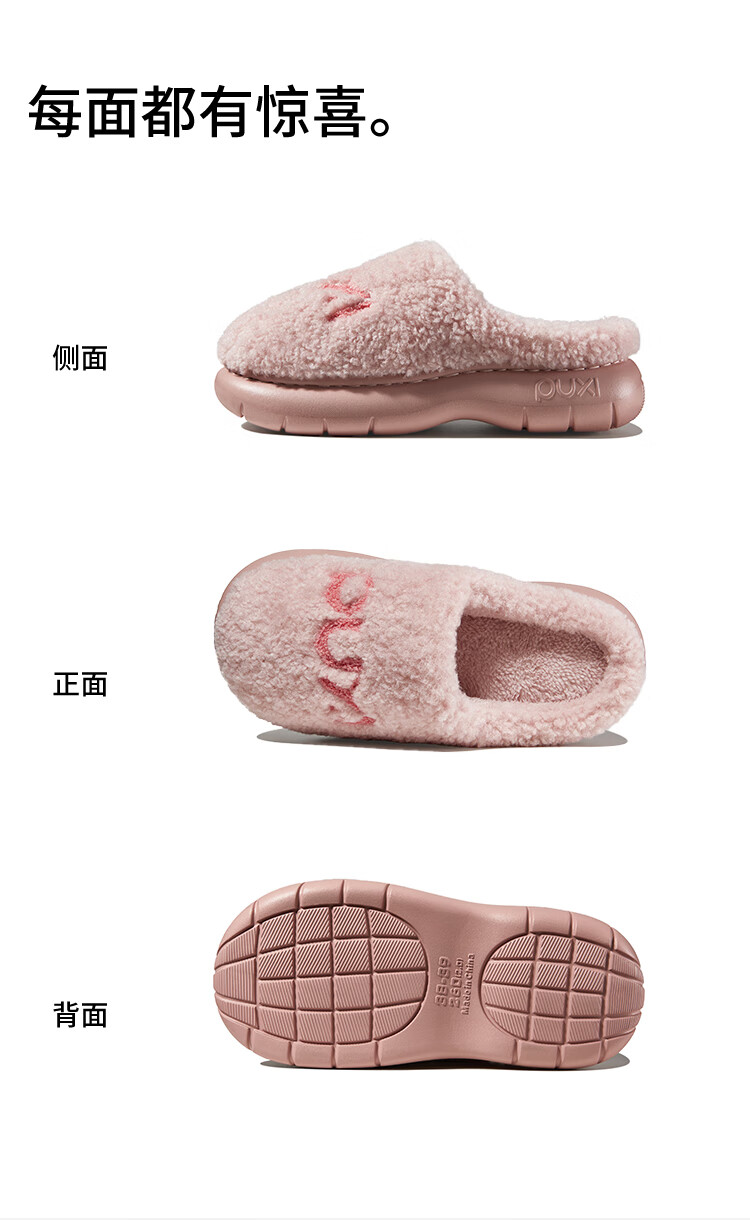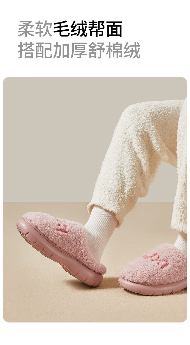 Park West Cotton Slippers Women's Home Autumn and Winter Indoor Warm Anti-Slip Plush Couple Thick-soled Cotton Slippers Pink 38-39