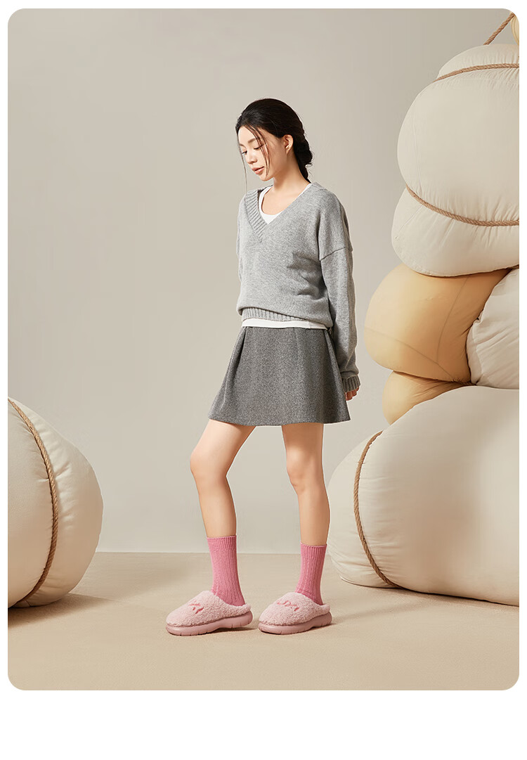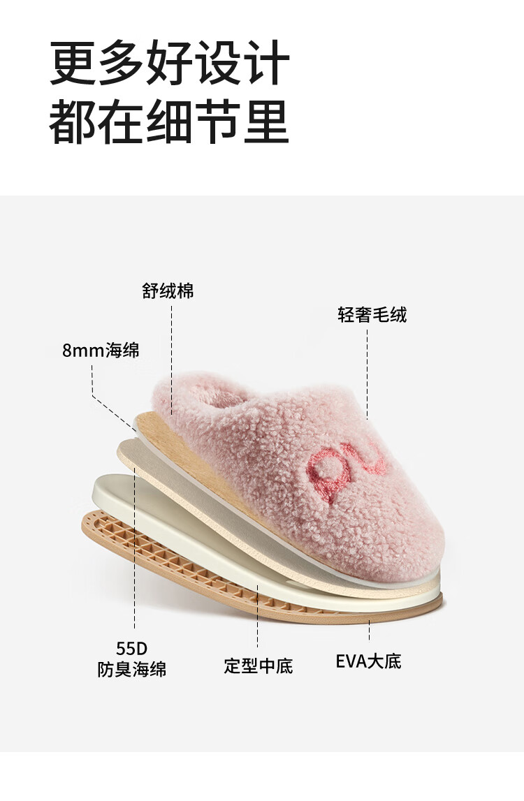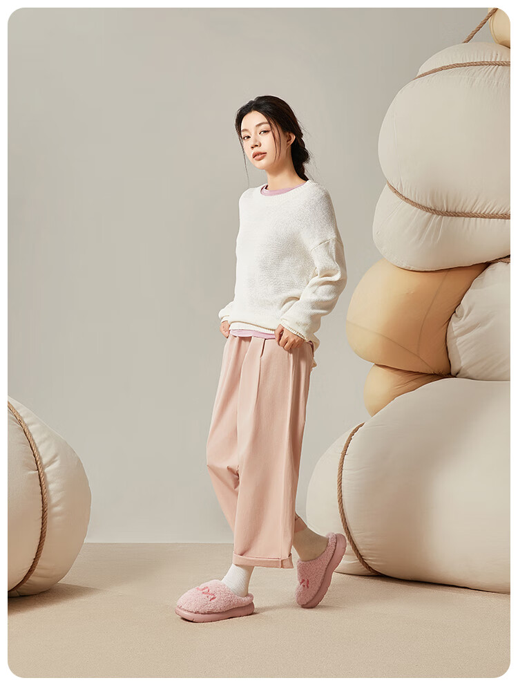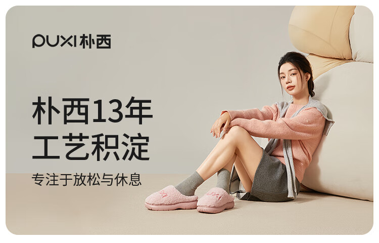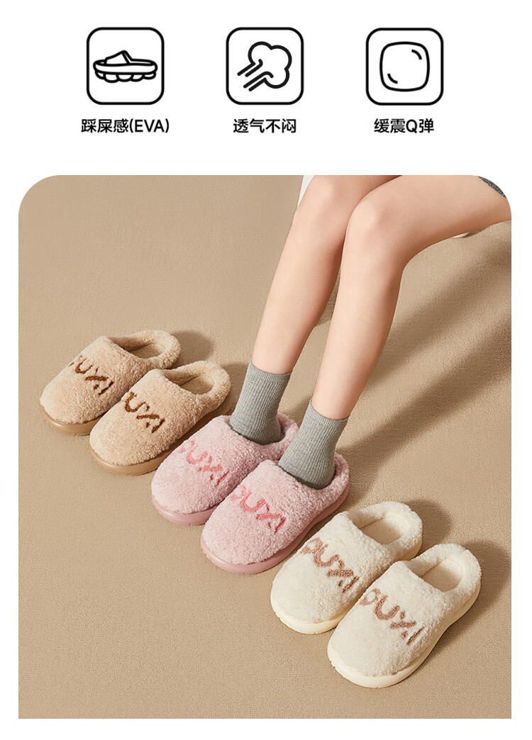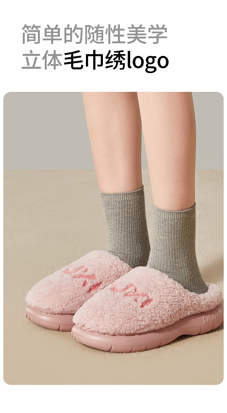 Park West Cotton Slippers Women's Home Autumn and Winter Indoor Warm Anti-Slip Plush Couple Thick-soled Cotton Slippers Pink 38-39