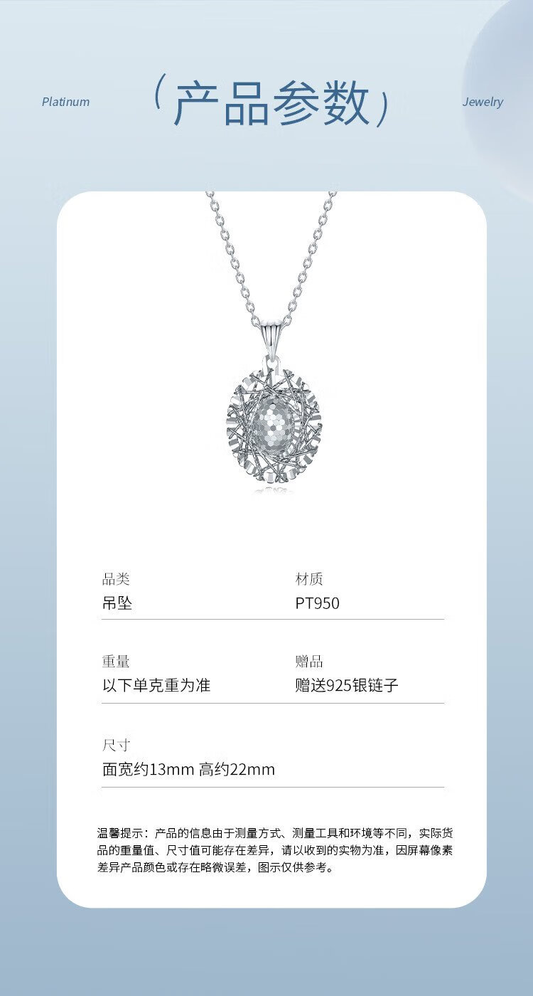 Liuguifu Jewelry Platinum Pendant One Pigeon Egg PT950 Platinum Pendant Necklace Pendant PT0600058 2.75g