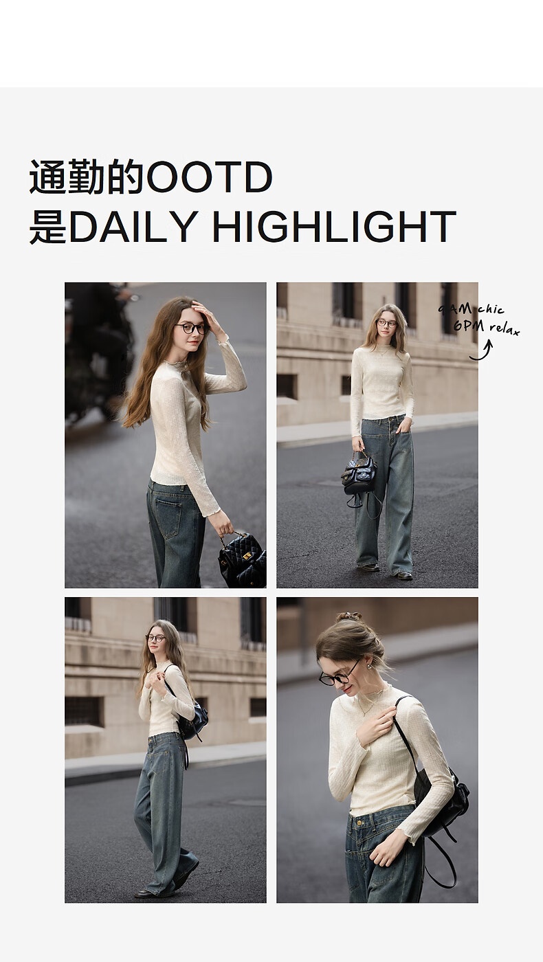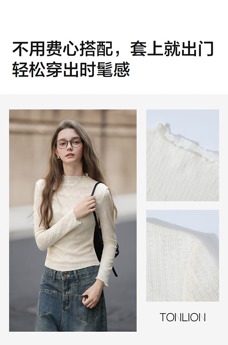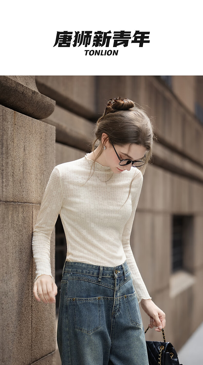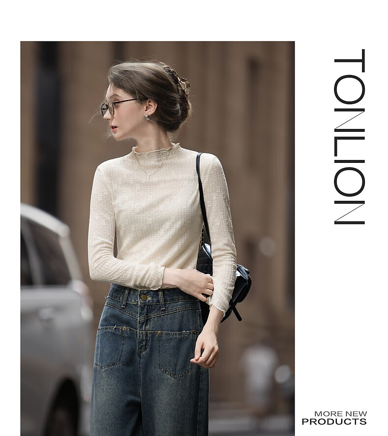 TonLion 2025 Autumn and Winter Women's Half Turtle Collar Solid Color Texture Knitted Bottoming Shirt