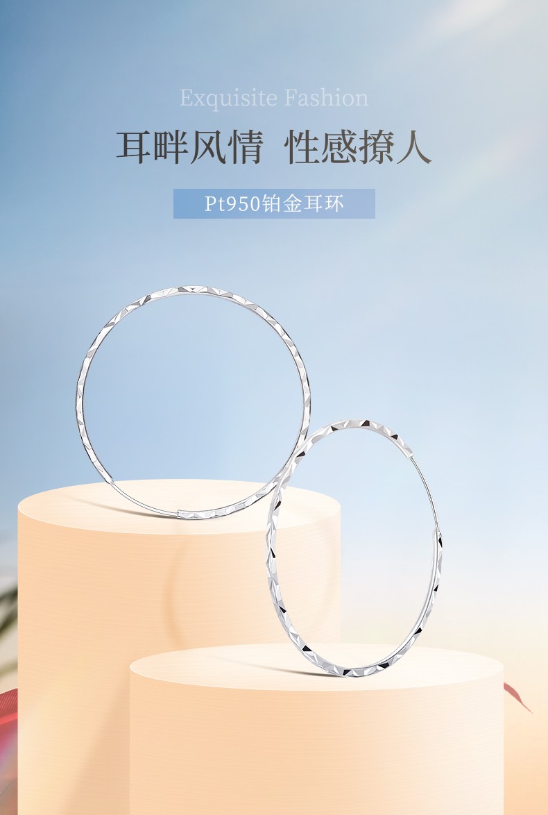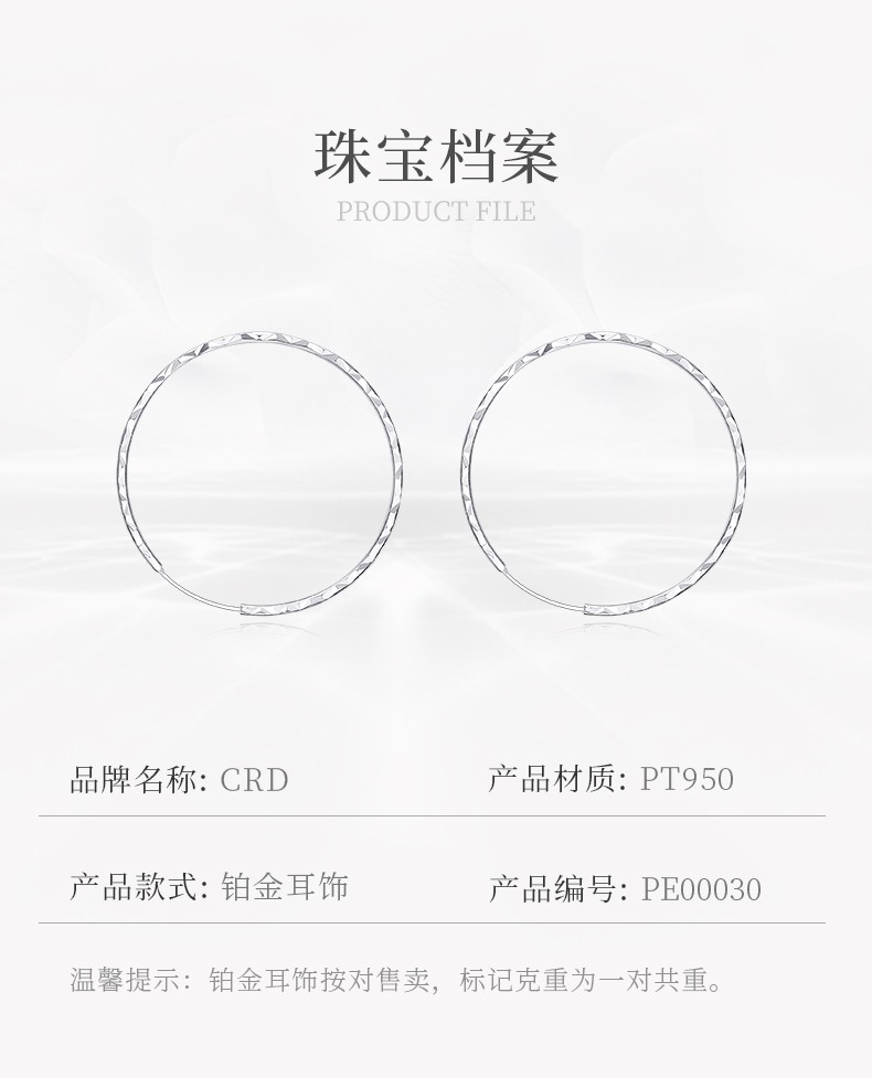 CRD Ke Laidi spot sparkling pt950 platinum earrings for women large circle car flower craft simple earrings 5.40g