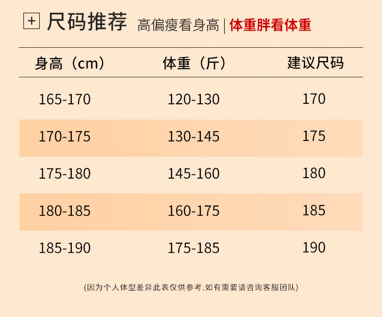 China (cm) 160-165/84-86 165-170 / 88-90 167-172 / 92-96 168-173 / 98-102 170-176 / 106-110