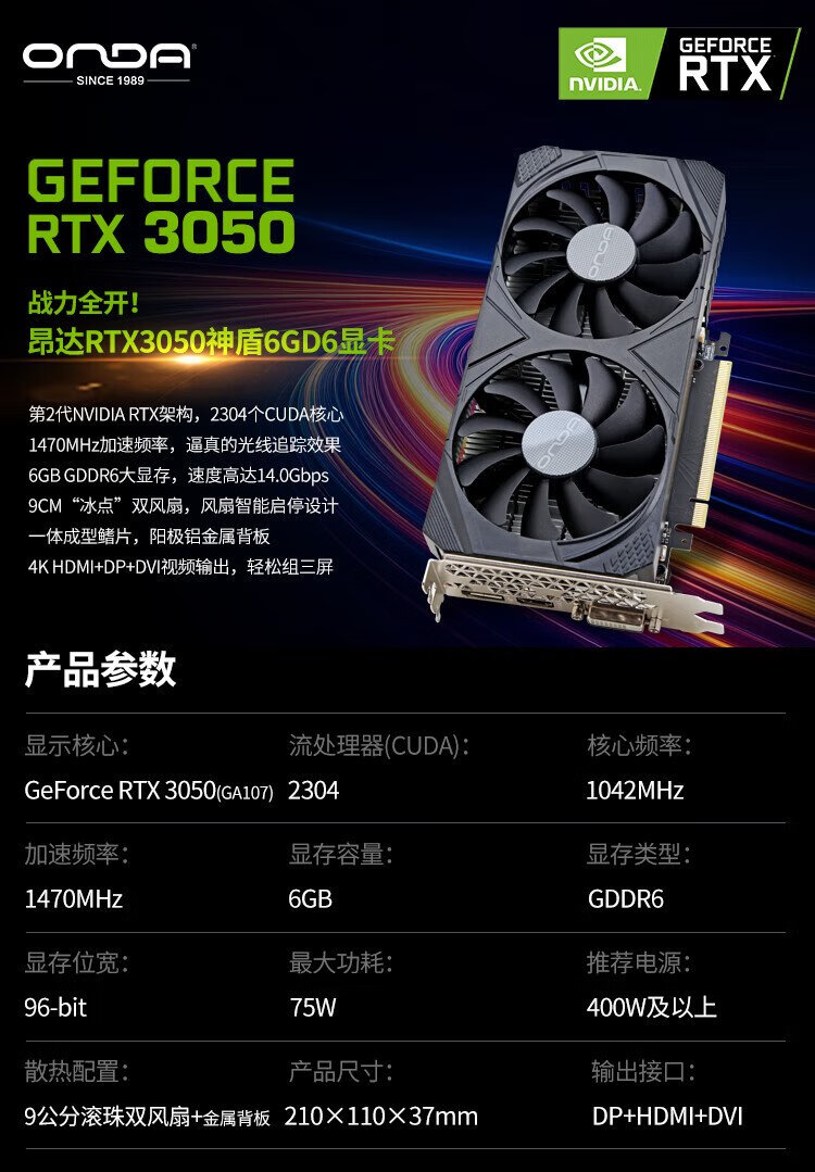 ONDA RTX3050 Aegis 6GD6 V3 6GB large video memory GDDR6 E-sports game design intelligent learning professional computer graphics card