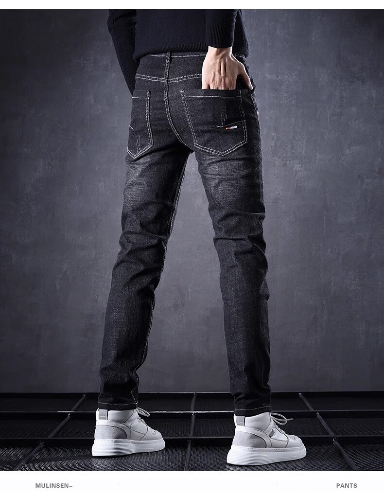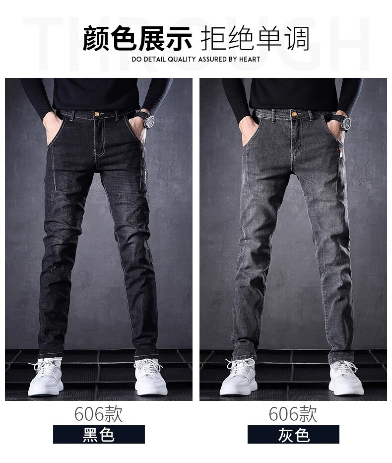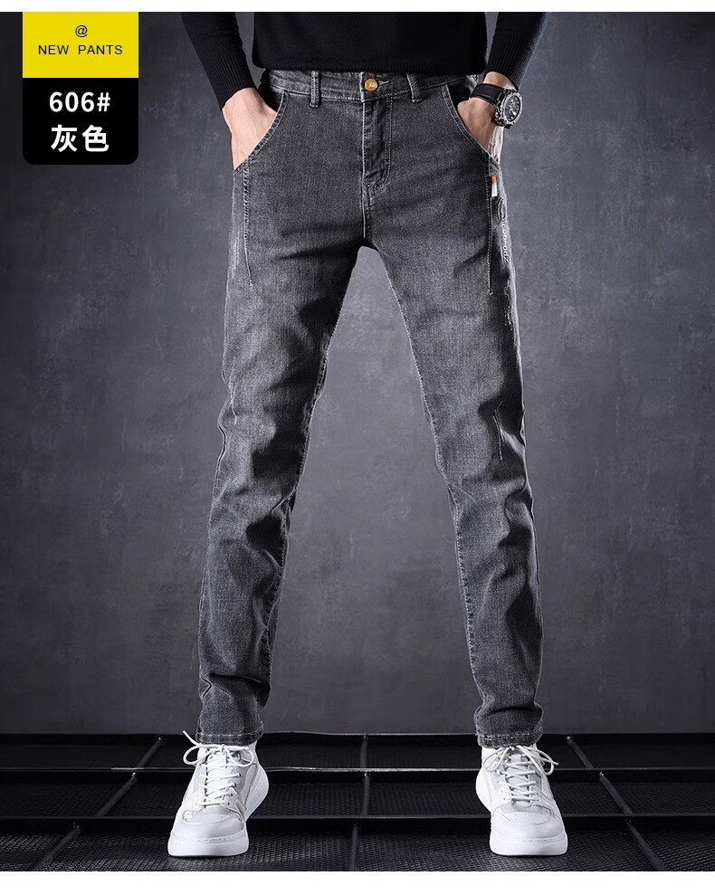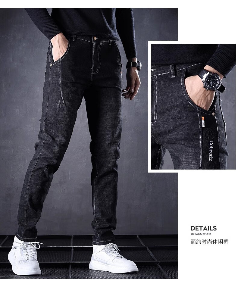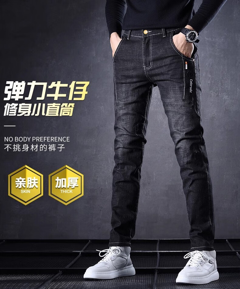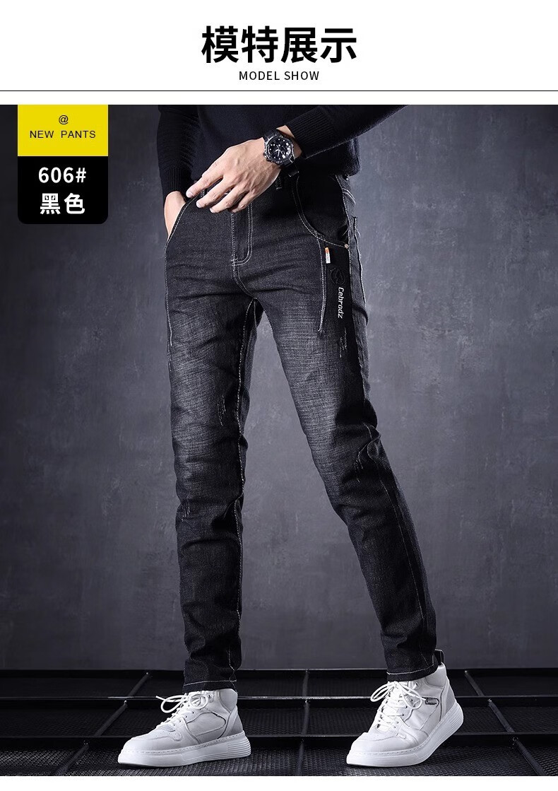 Playboy Jeans Men's Autumn and Winter 2025 New Men's Pants Stretch Slim Fit Small-leg Pants Winter Velvet Casual Versatile Trousers 606 Black Regular + 606 Gray Regular 34 (2 feet 7) Weight 155-165 Jin Jin is equal to 0.5 kg