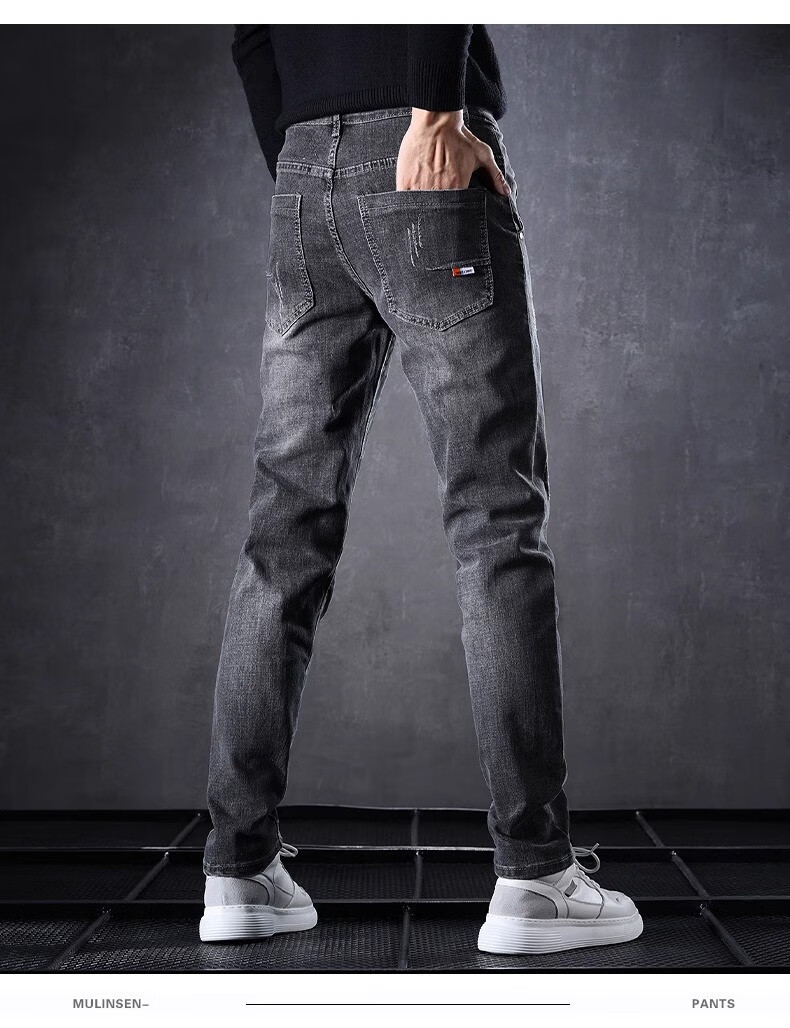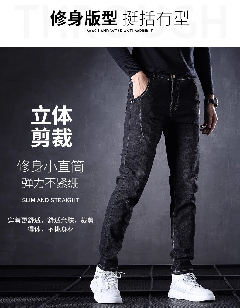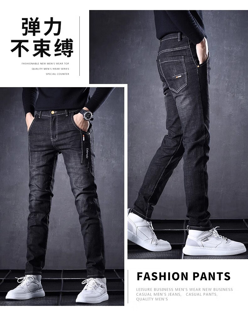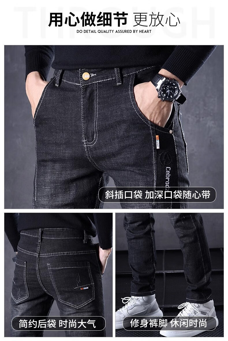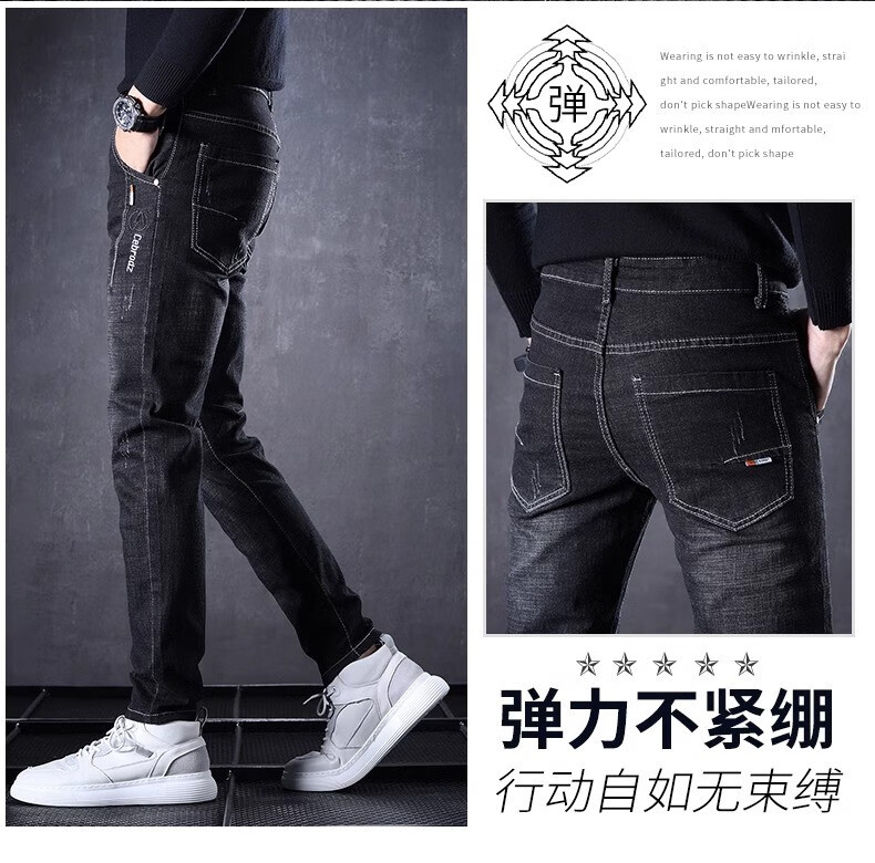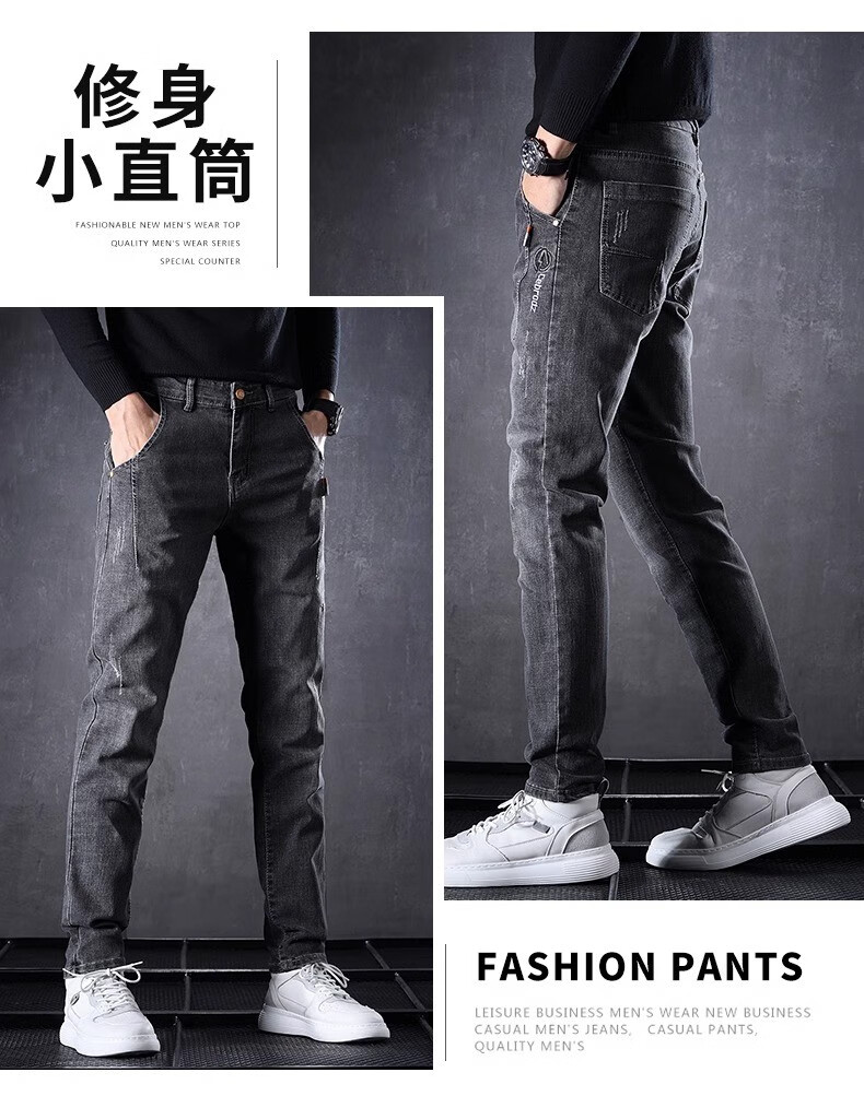 Playboy Jeans Men's Autumn and Winter 2025 New Men's Pants Stretch Slim Fit Small-leg Pants Winter Velvet Casual Versatile Trousers 606 Black Regular + 606 Gray Regular 34 (2 feet 7) Weight 155-165 Jin Jin is equal to 0.5 kg