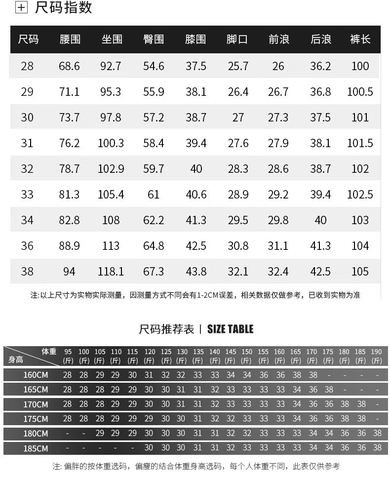 USA(inch) 28-30 30-32 32-34 34-38 38-42