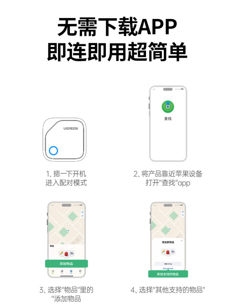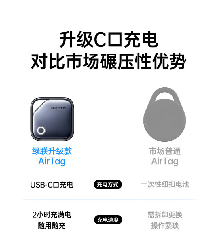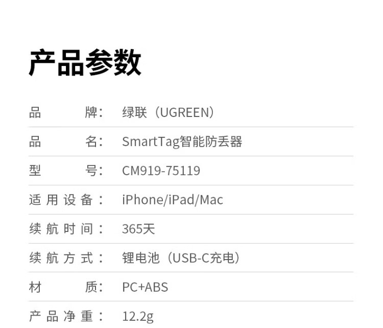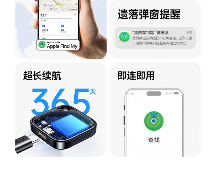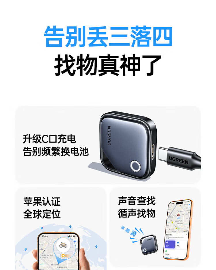 Green Alliance AirTag Apple Certified Positioning Tracker Anti-Lost Device Wireless Accurate Search Suitable for Apple Mobile Phones Children Elderly Pets Luggage Keys Upgraded C Port Charging