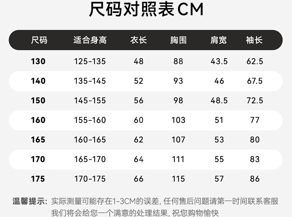 China (cm) 160-165/84-86 165-170 / 88-90 167-172 / 92-96 168-173 / 98-102 170-176 / 106-110