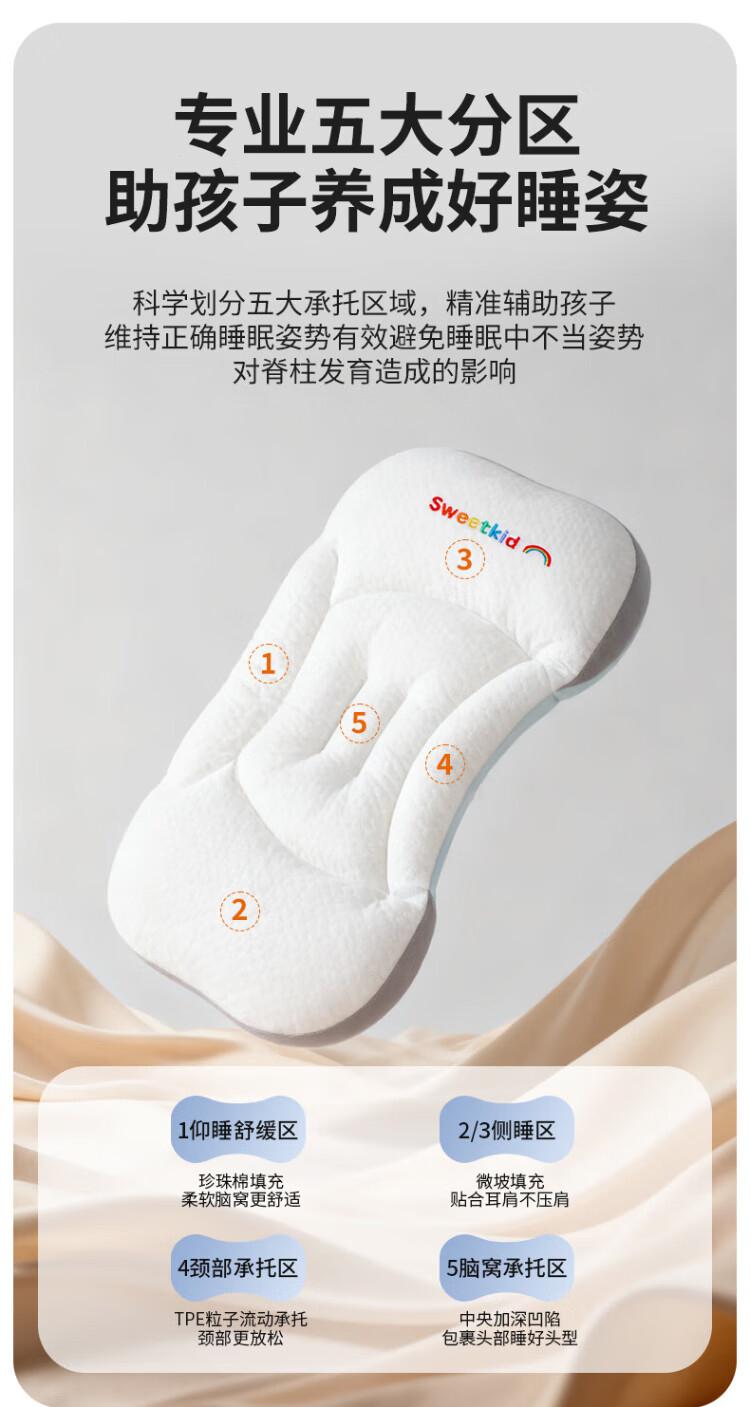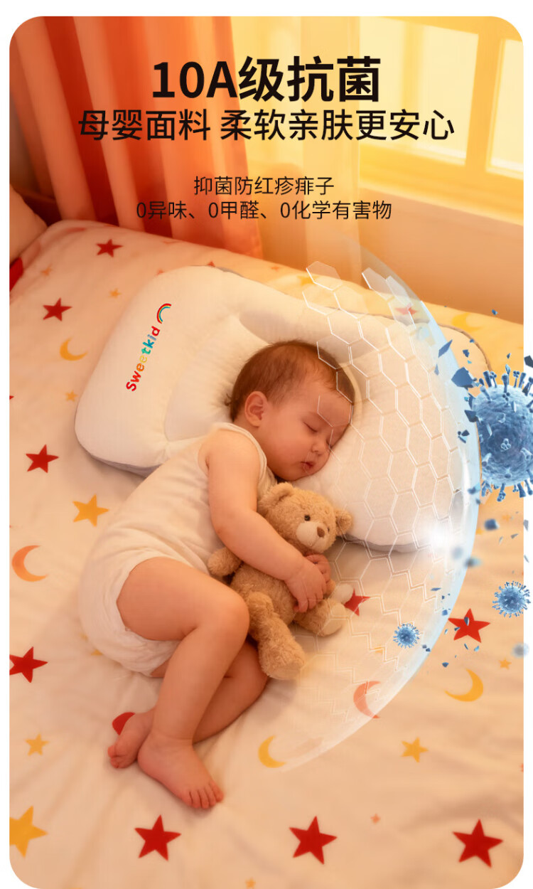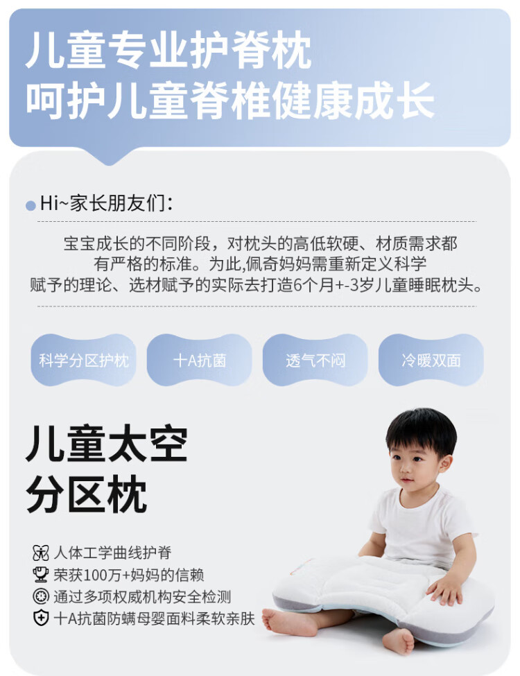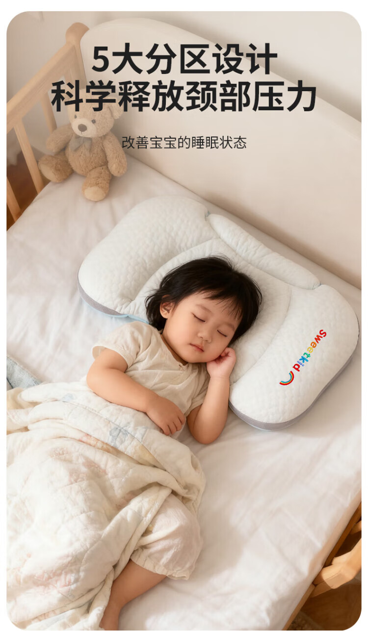 PEIQIMAMA infant and toddler antibacterial neck pillow for children 1-3 years old, partitioned pillow, baby staged pillow for 6 months and above