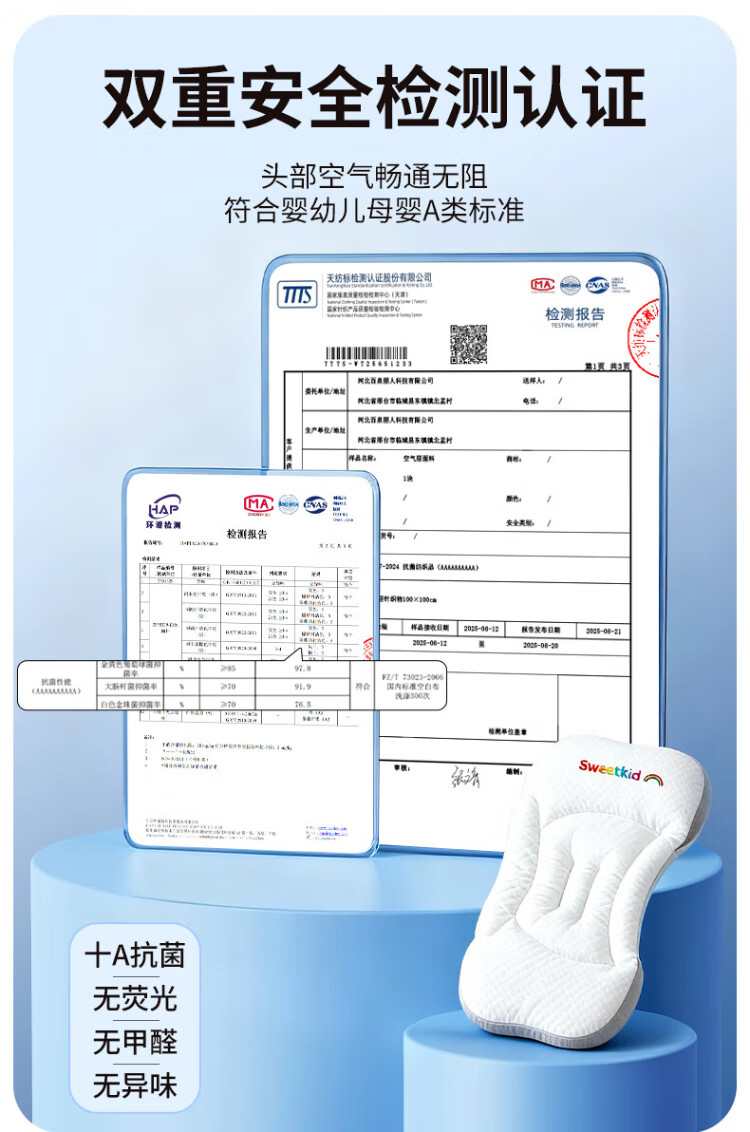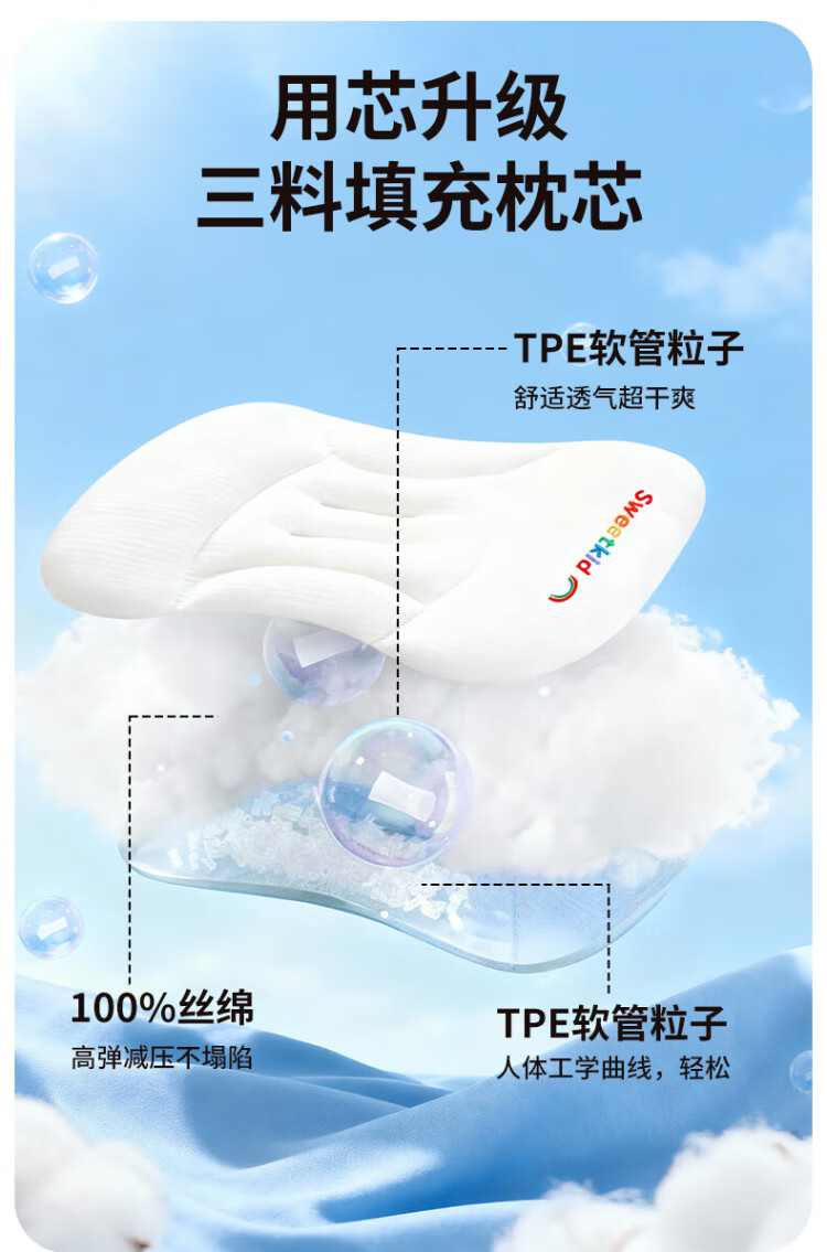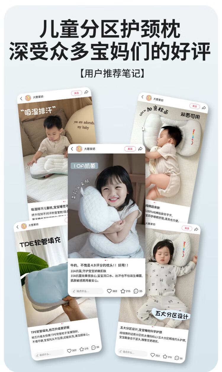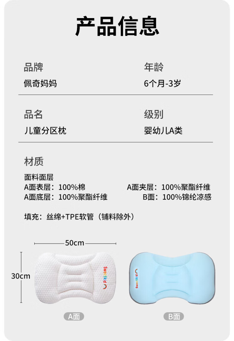 PEIQIMAMA infant and toddler antibacterial neck pillow for children 1-3 years old, partitioned pillow, baby staged pillow for 6 months and above