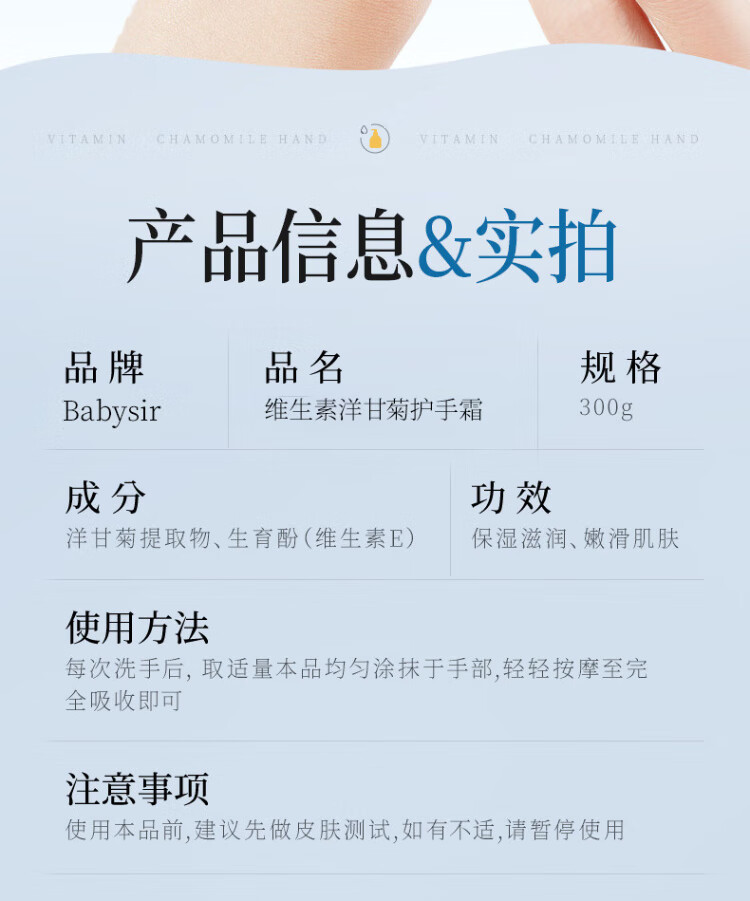 BABYSIR Vaseline Large Bottle Chamomile Hand Cream 300g Moisturizing, Moisturizing, Long-lasting Anti-Drying, Special for Autumn and Winter to Dilute Fine Lines