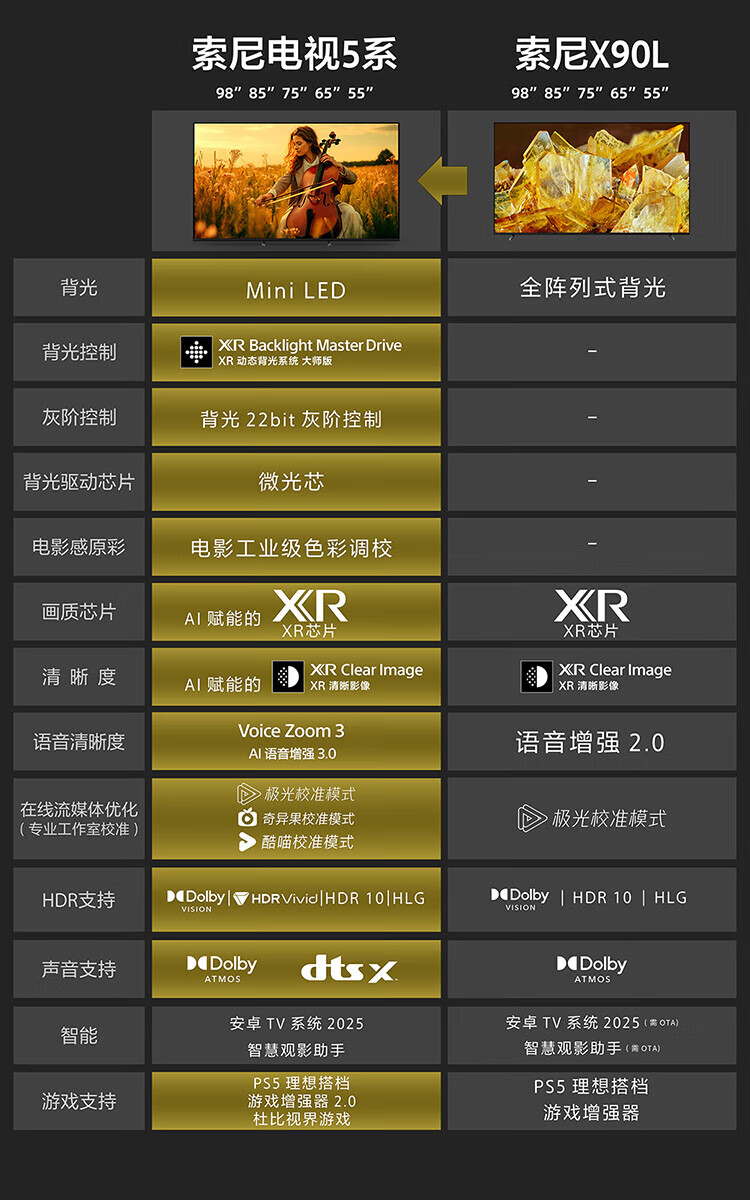 Sony (SONY) K-55XR50 X90L upgraded model 55-inch Sony TV 5 series 2025 new product MiniLED XR chip Level 2 energy efficiency national subsidy