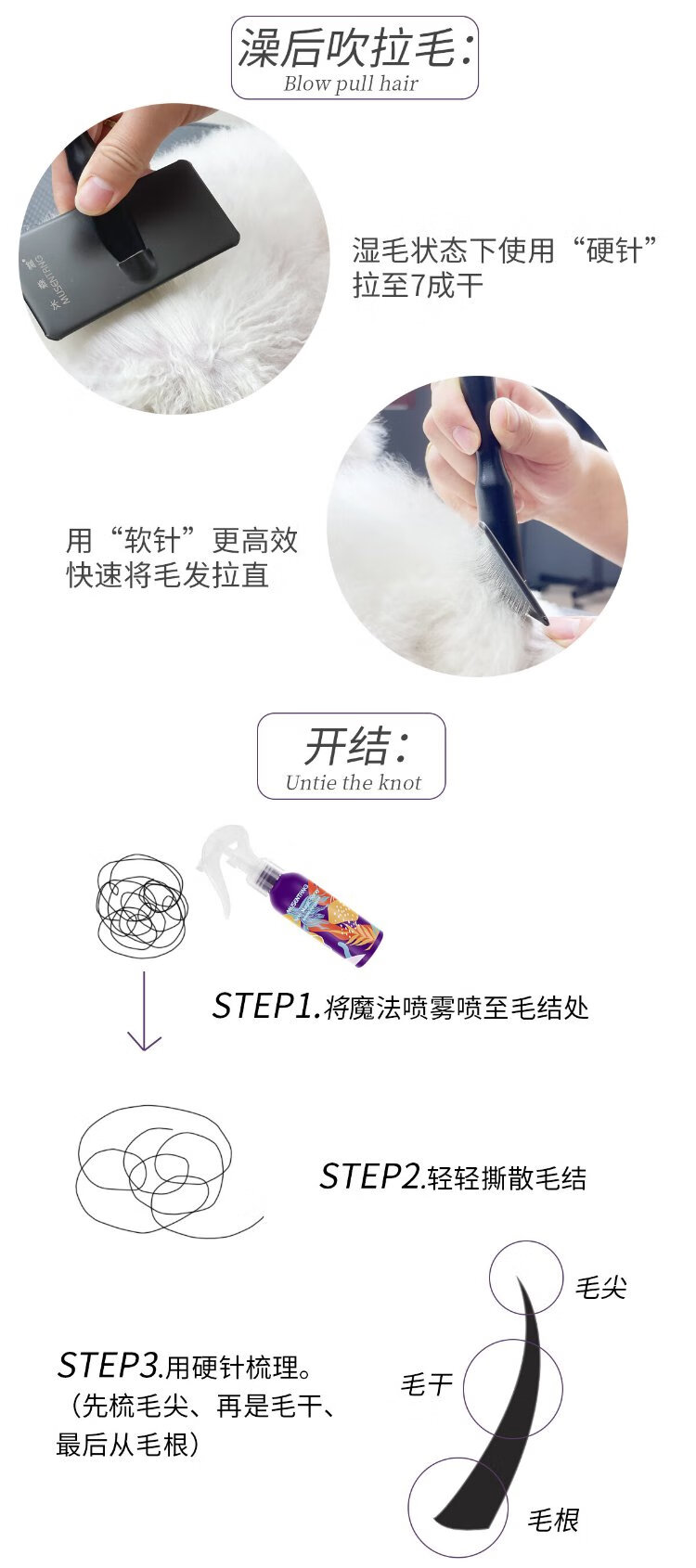 Musentang Black Gold No. 1 Hard Needle Comb + Magic Knot Opening Spray for Dogs, Fluffy Style 80ml