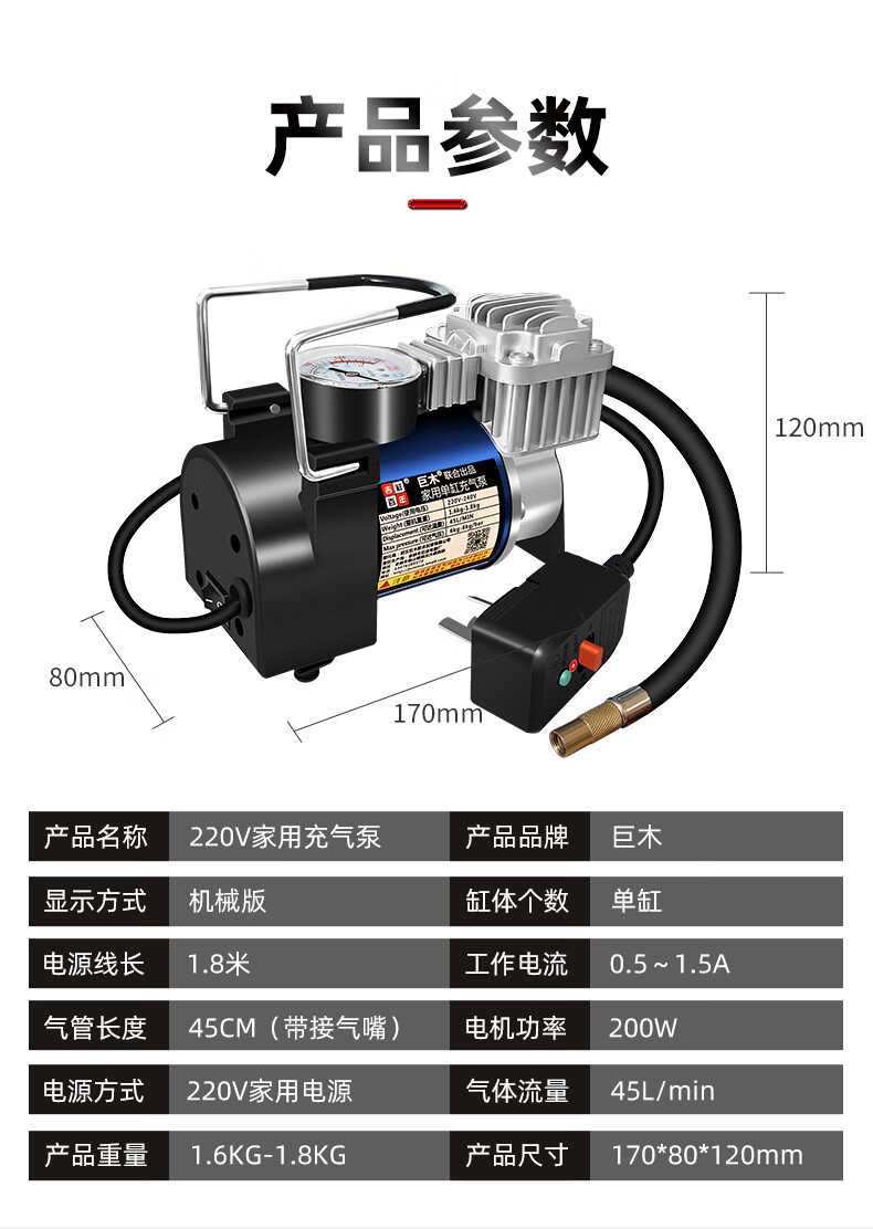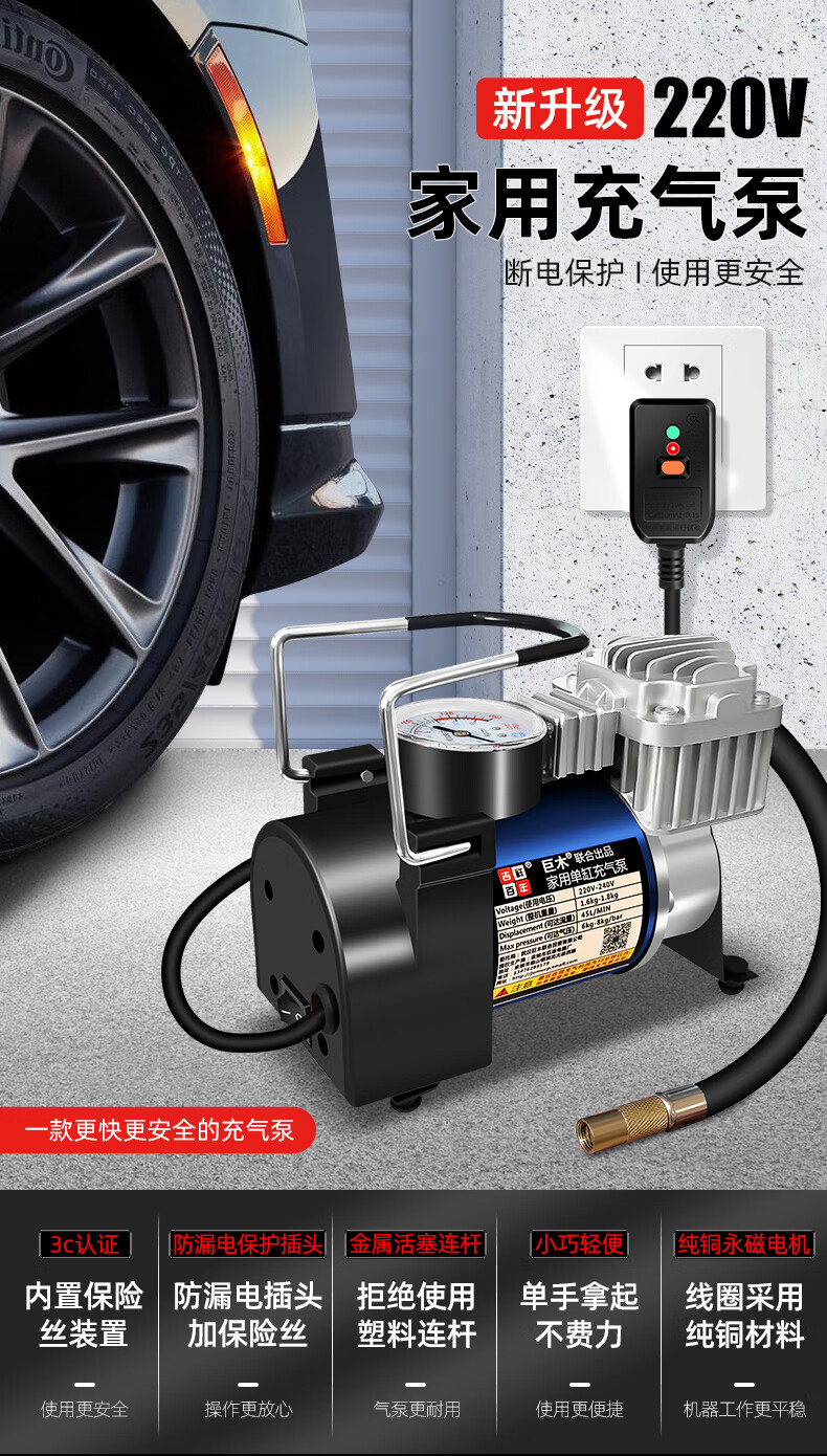 Jumu 220V household air pump car tire pump electric bicycle motorcycle basketball pump 220V household air pump + handbag + 3m extension tube