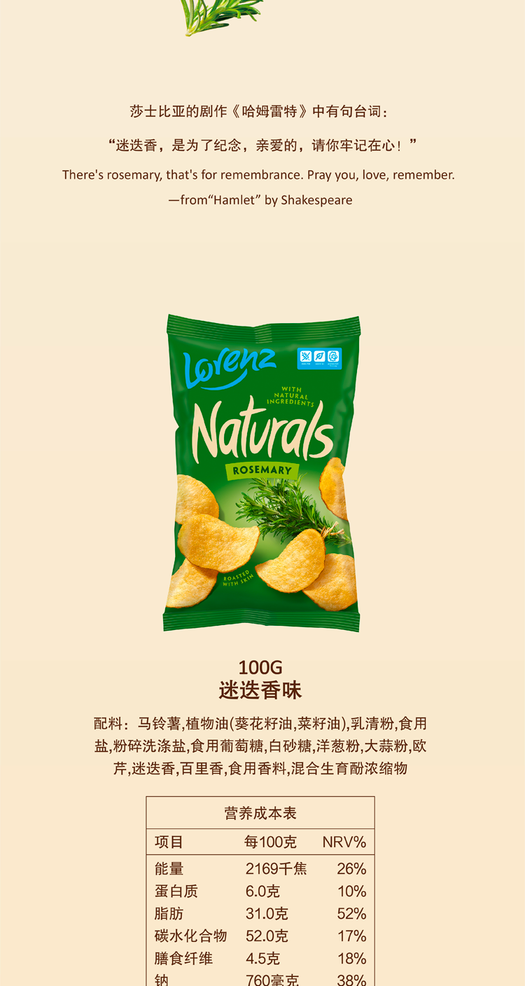 Lorenz Norenz rosemary flavored potato chips 100g*1 German imported snack food office snacks