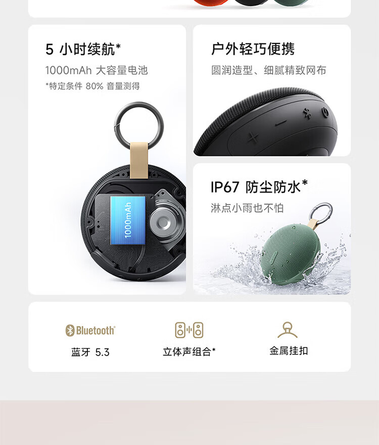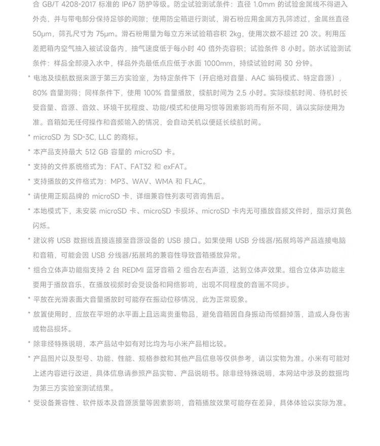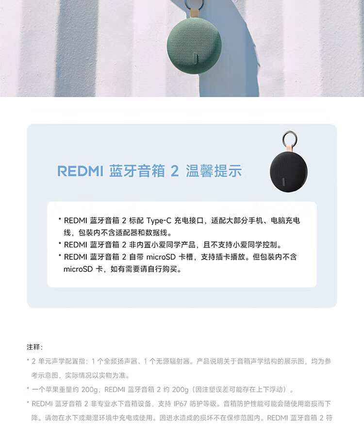 Xiaomi (MI) REDMI Bluetooth Speaker 2 Black Xiaomi Speaker Long Battery Life IP67 Dustproof and Waterproof Outdoor Portable Card Audio Subwoofer Gift Home Use
