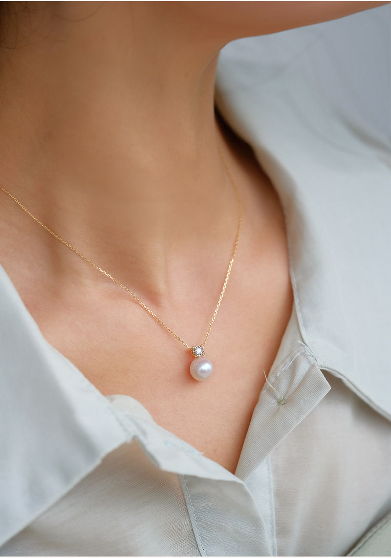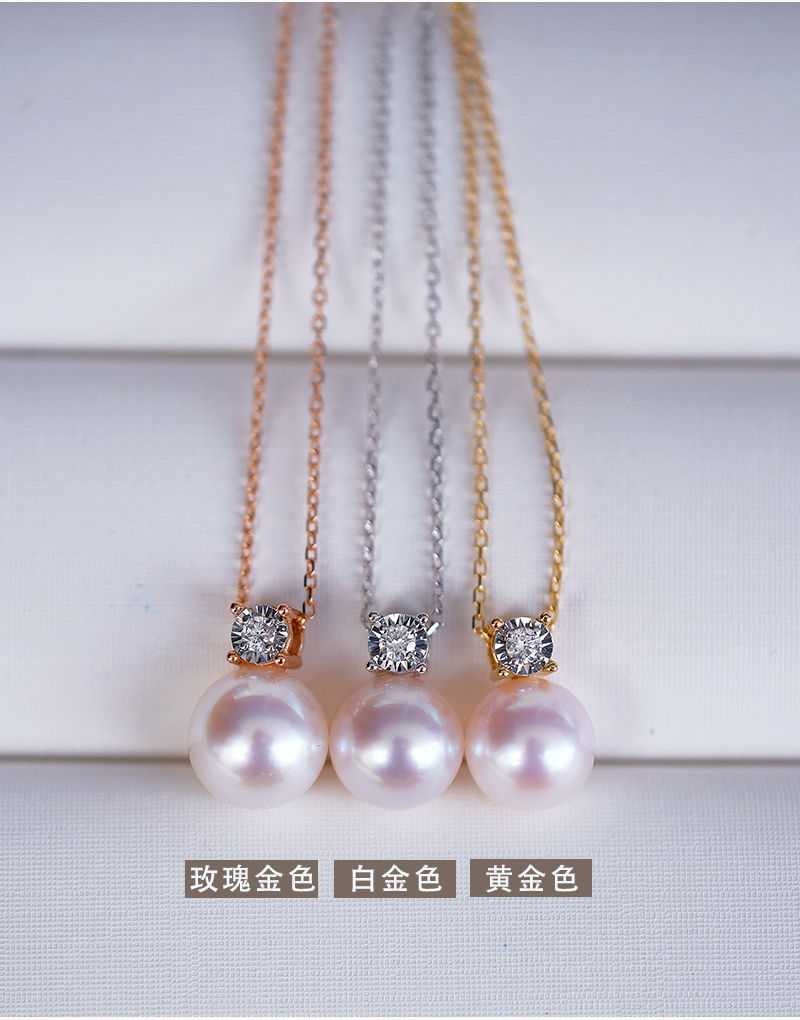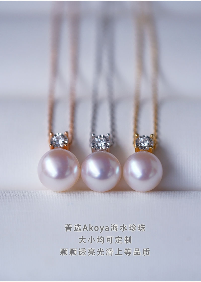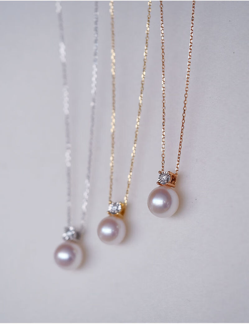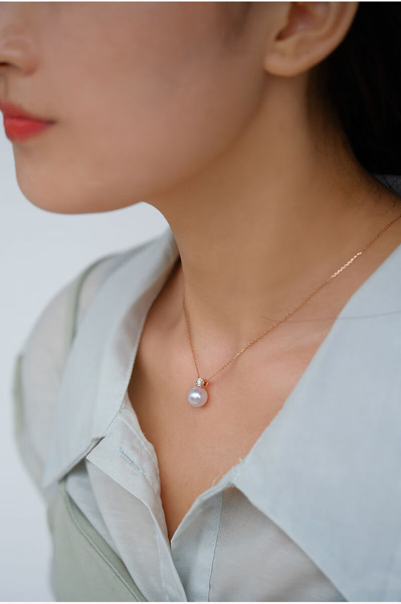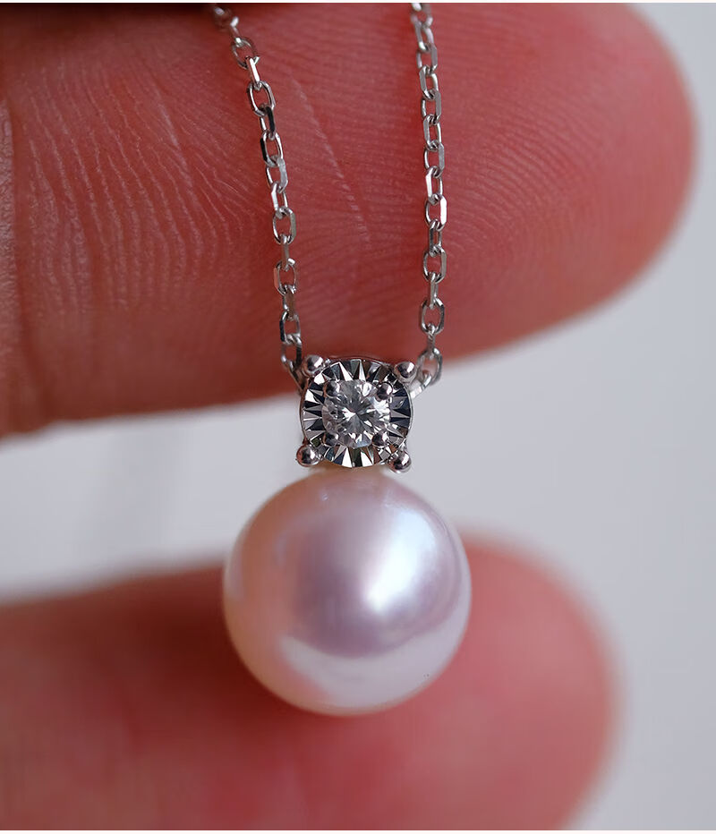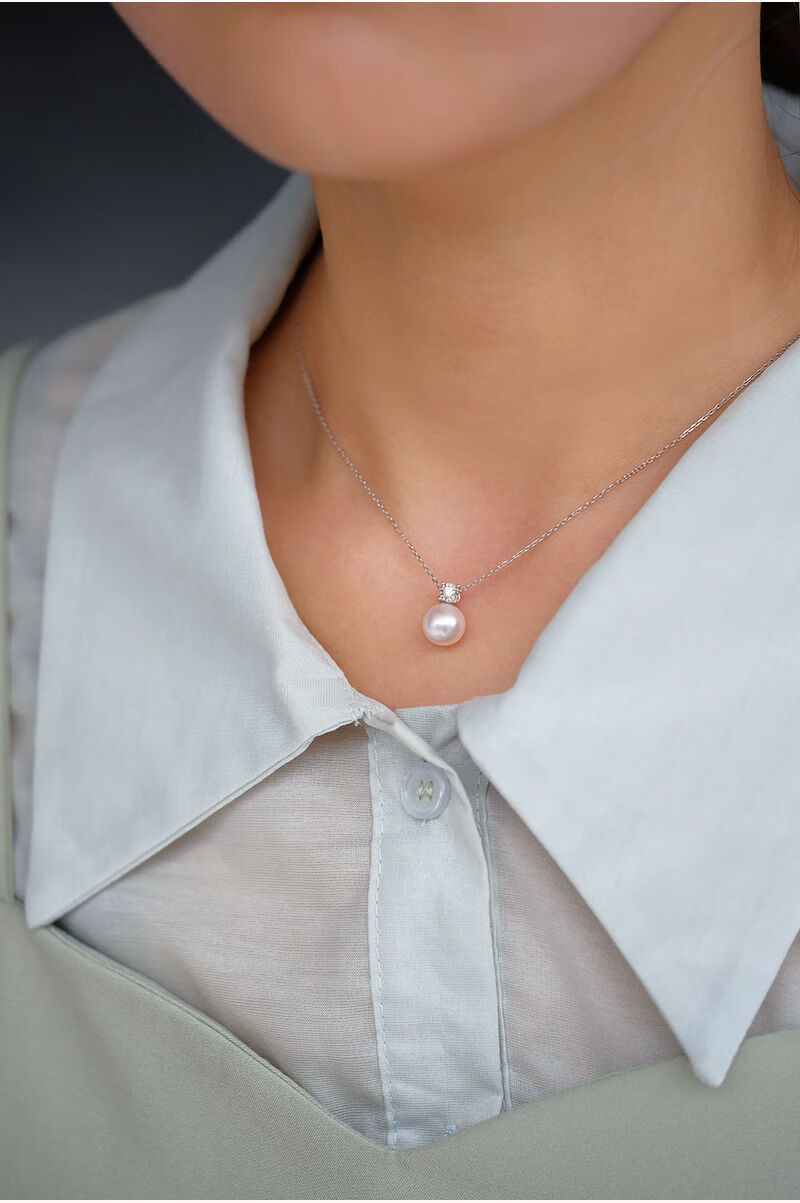 V&C Japan AKOYA seawater pearl pendant 18K gold diamond princess style single diamond pendant flawless 18K white (excluding chain) 9-9.5MM