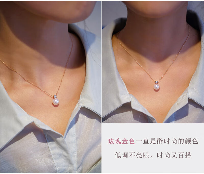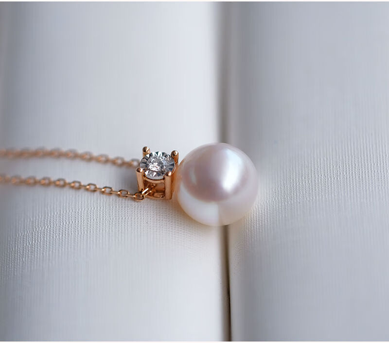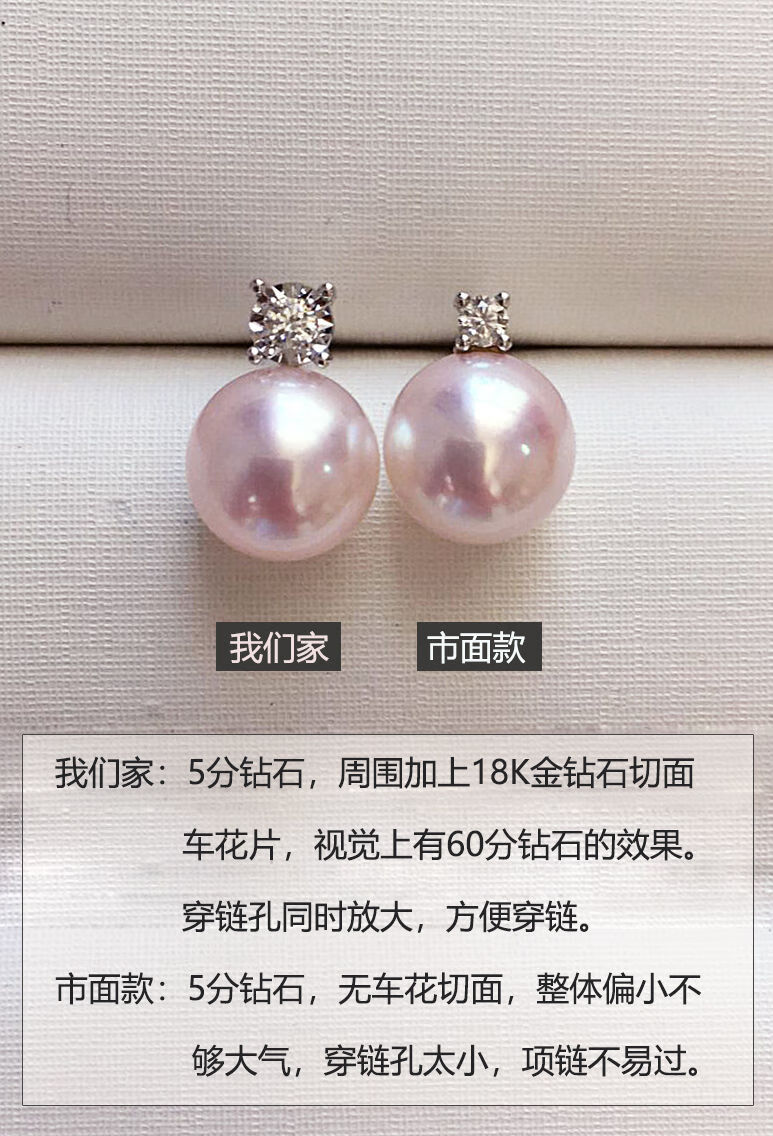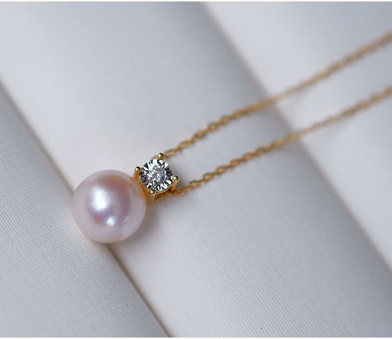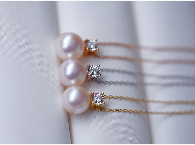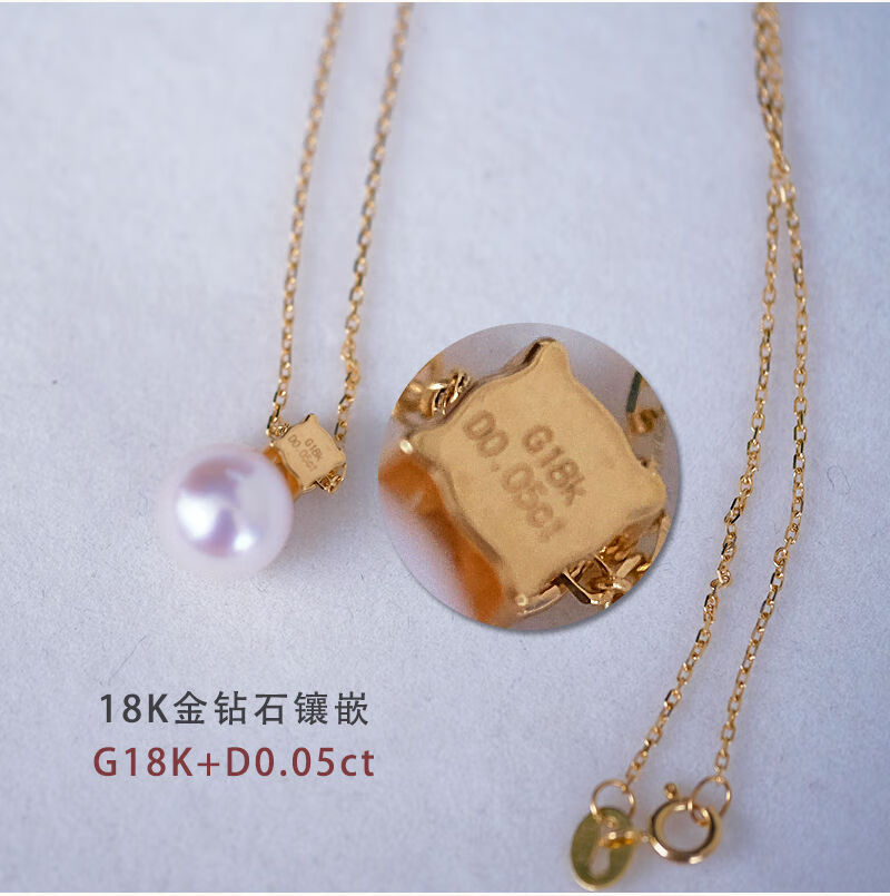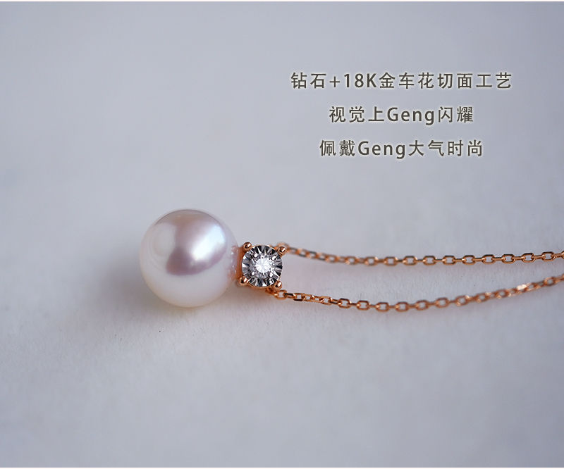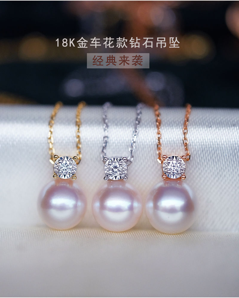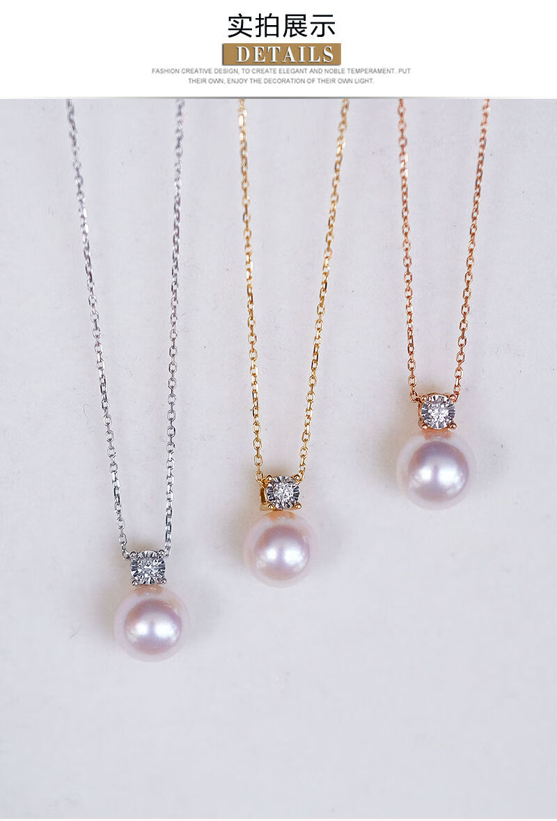 V&C Japan AKOYA seawater pearl pendant 18K gold diamond princess style single diamond pendant flawless 18K white (excluding chain) 9-9.5MM